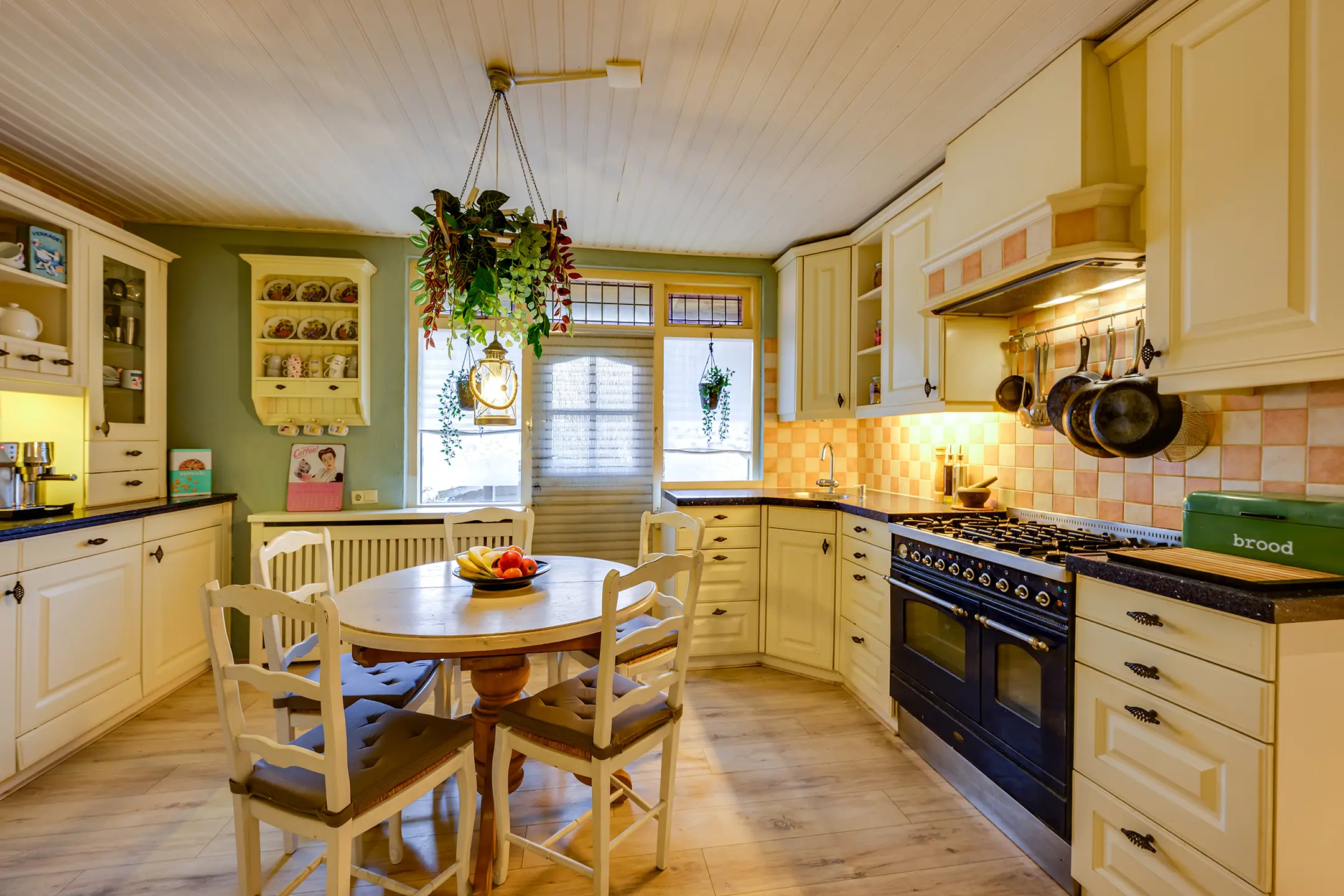 De boerenkeuken, compleet met staldeur, is een droom voor iedereen die graag kookt of bakt — het is een keuken waar koekjes worden gemaakt én versierd aan tafel.