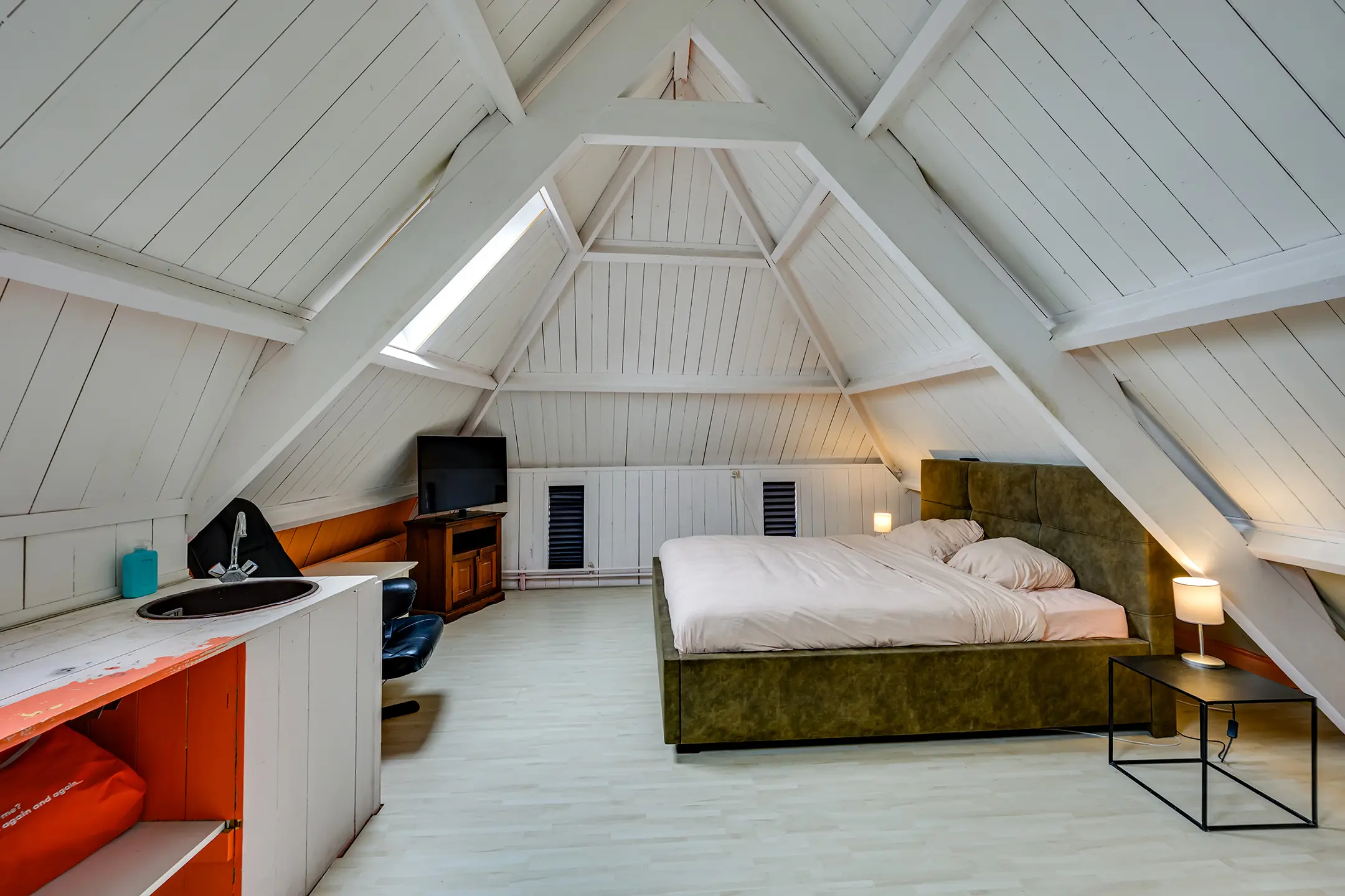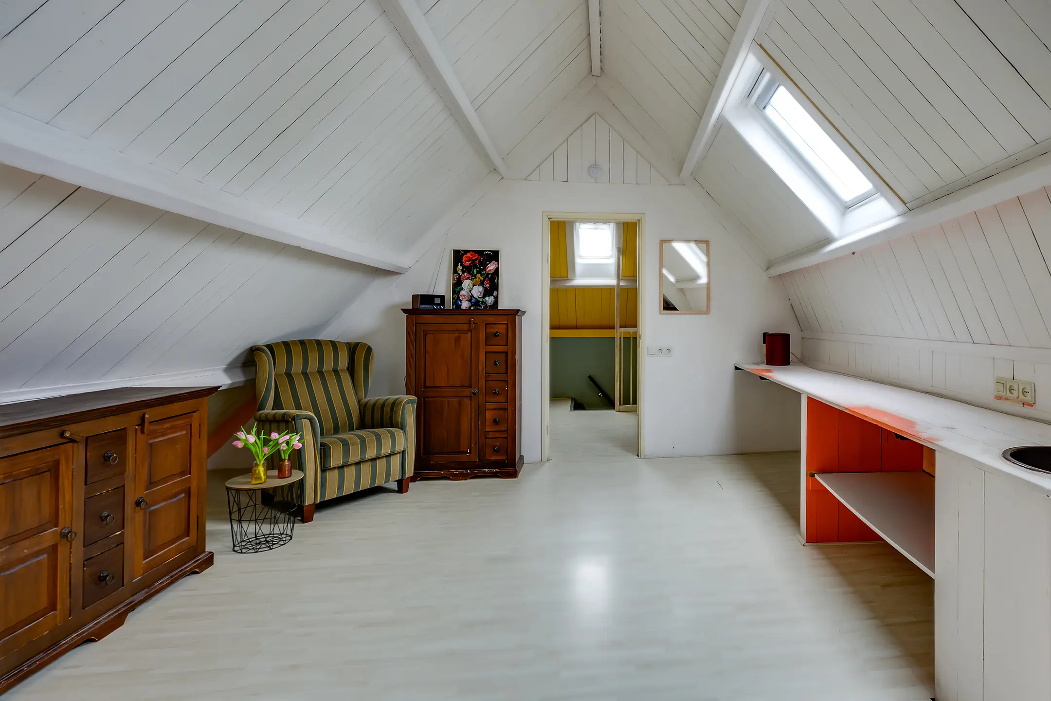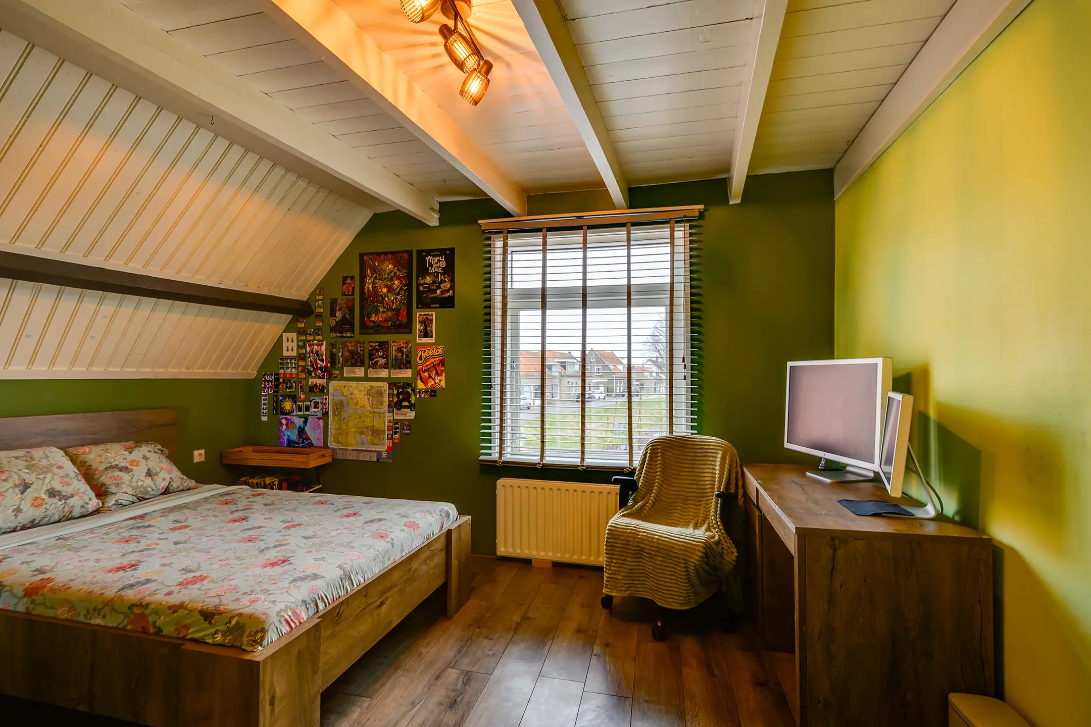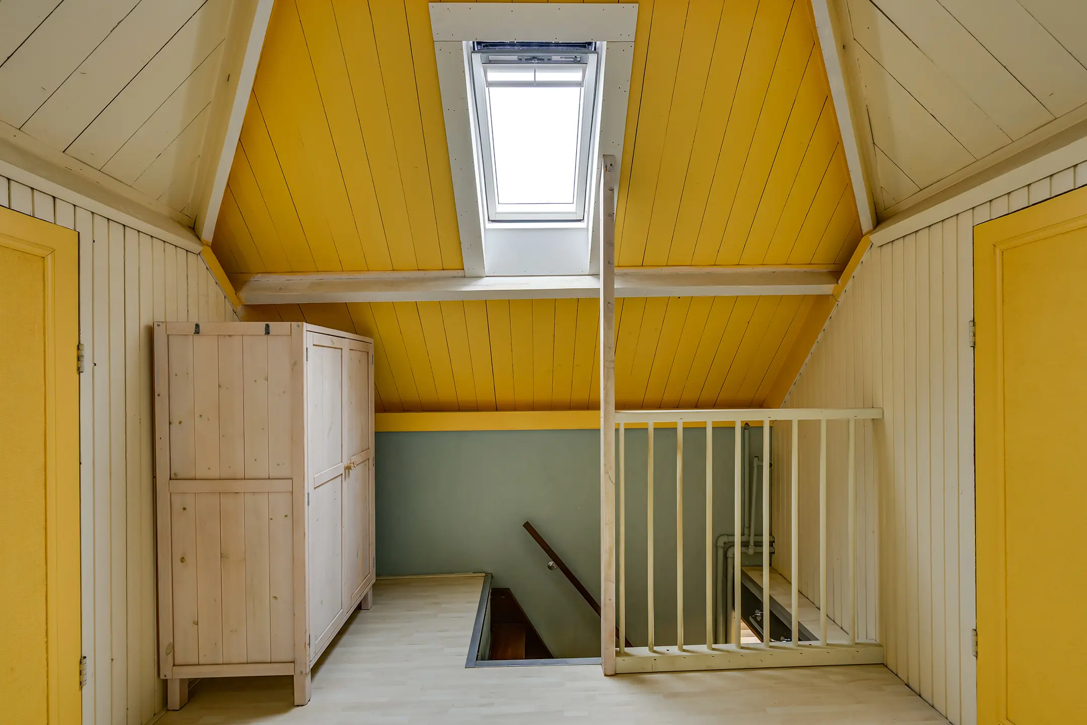 Twee grote slaapkamers en een grote zolder over de hele breedte van het huis bieden iedereen een eigen plek.