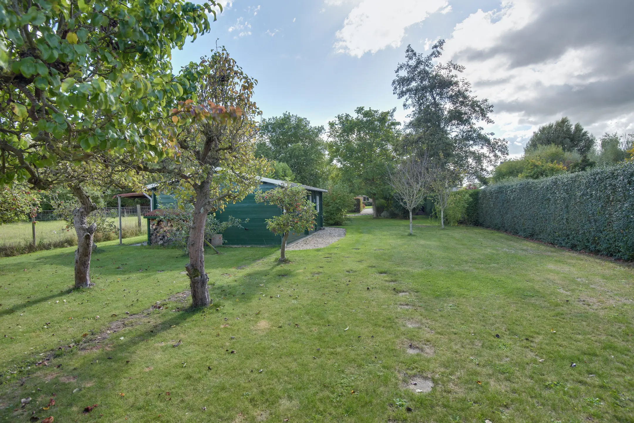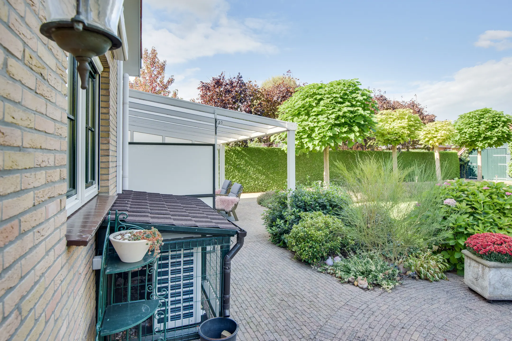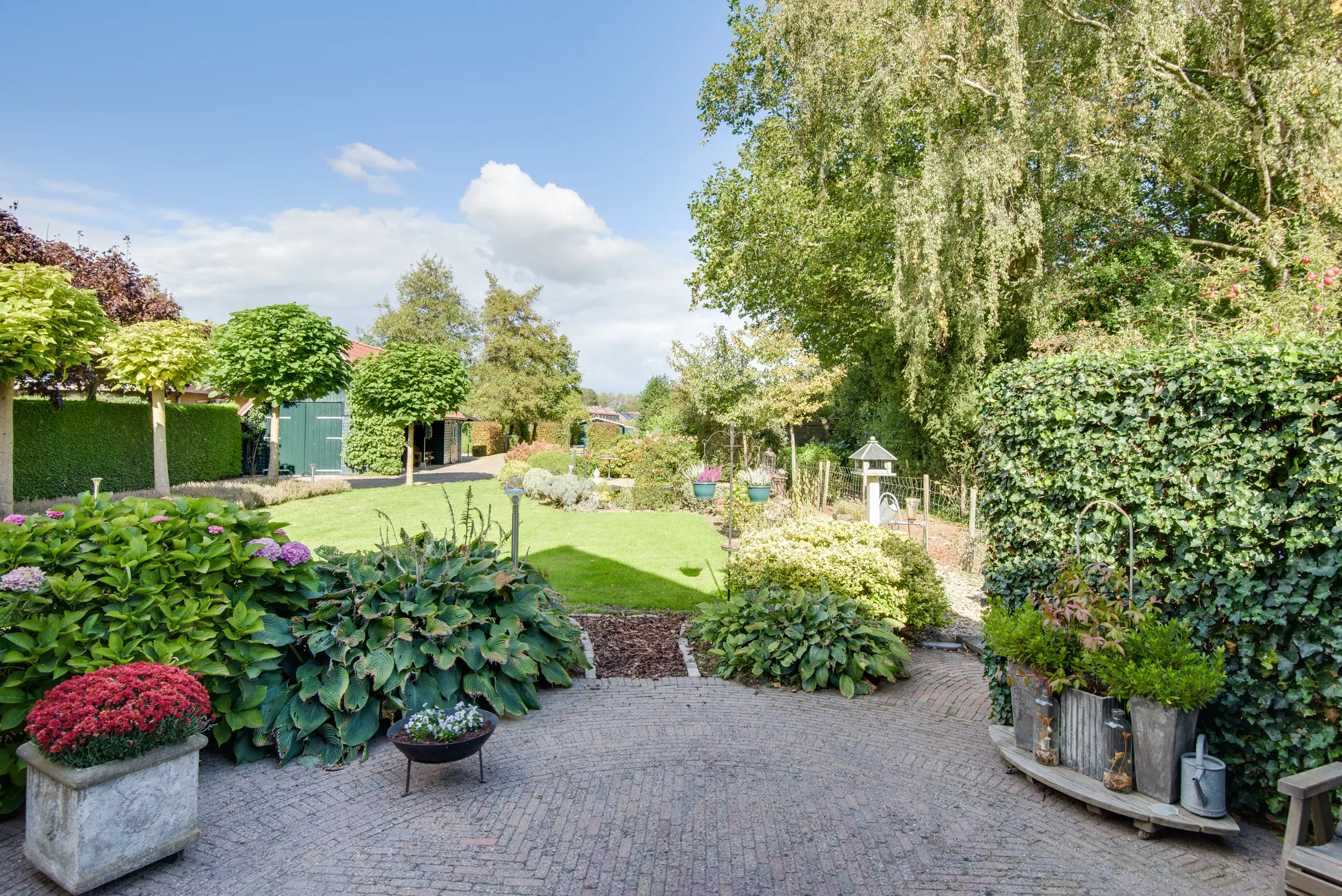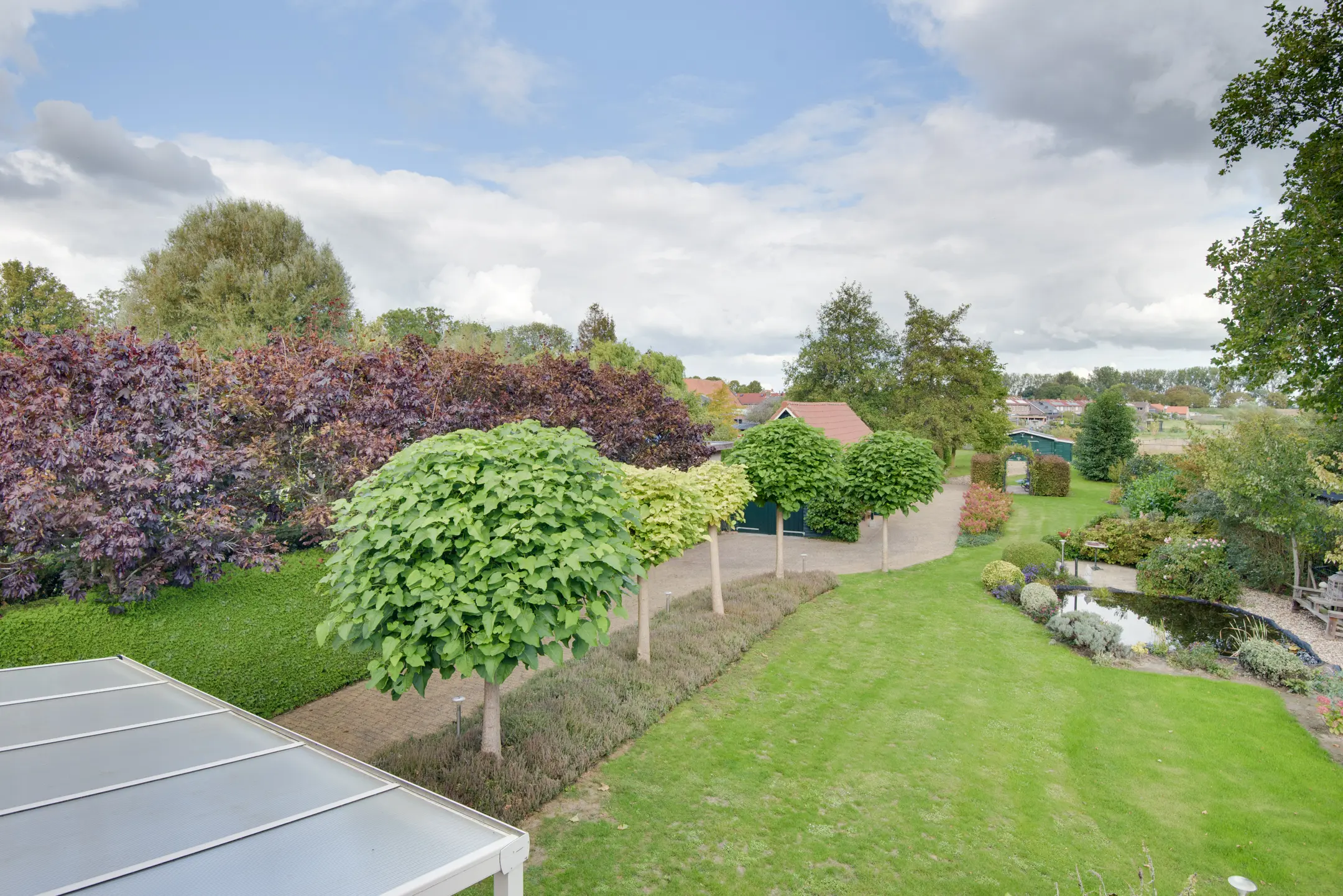 De achtertuin is een absolute eyecatcher. Met een lengte van maar liefst 110 m diep (!) geniet je hier van ultieme rust, privacy en natuur. De tuin is prachtig aangelegd met een vijver, sierbeplanting en diverse bomen. Of je nu wilt ontspannen onder de overkapping, tuinieren of wandelen op eigen terrein: dit perceel maakt het mogelijk.