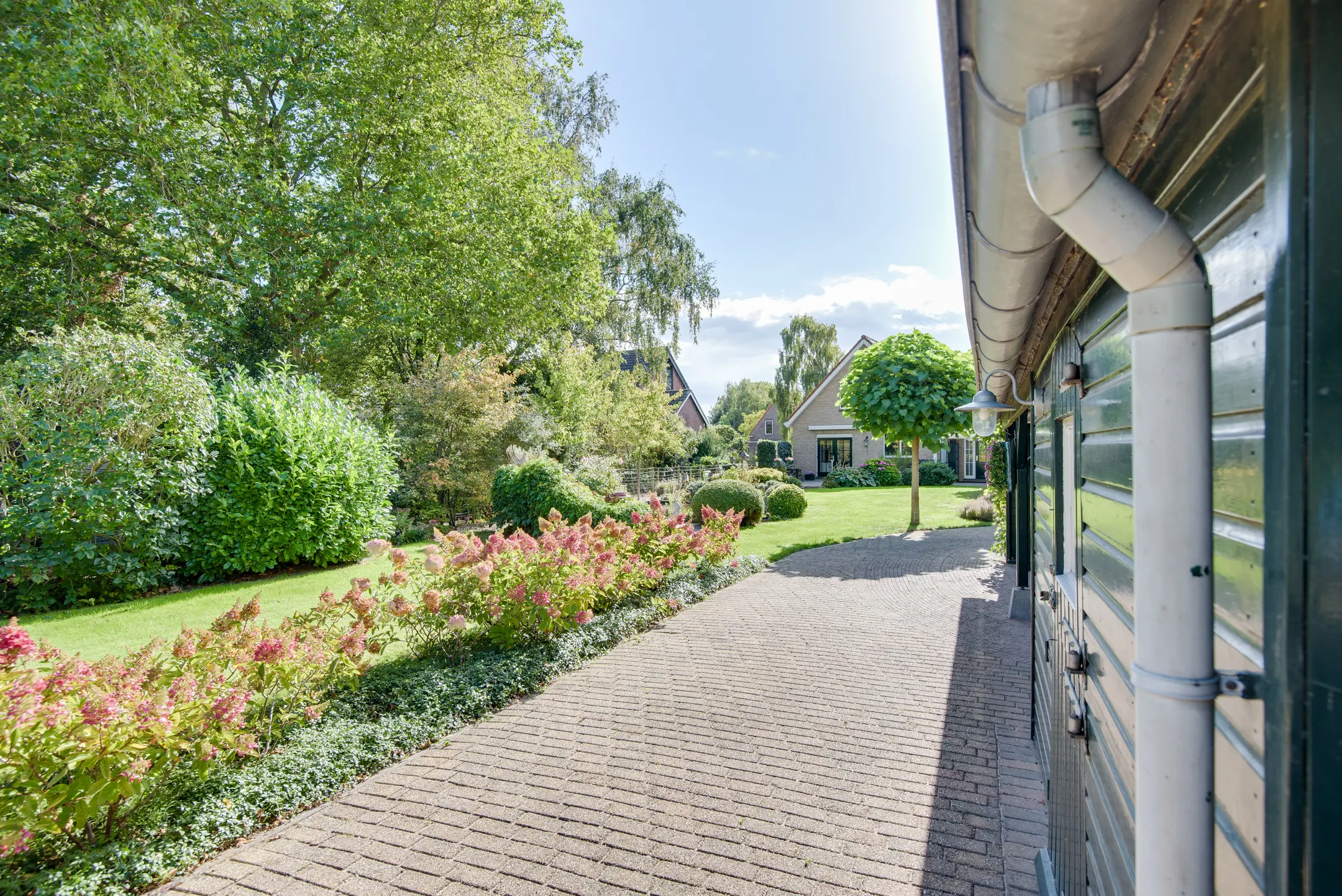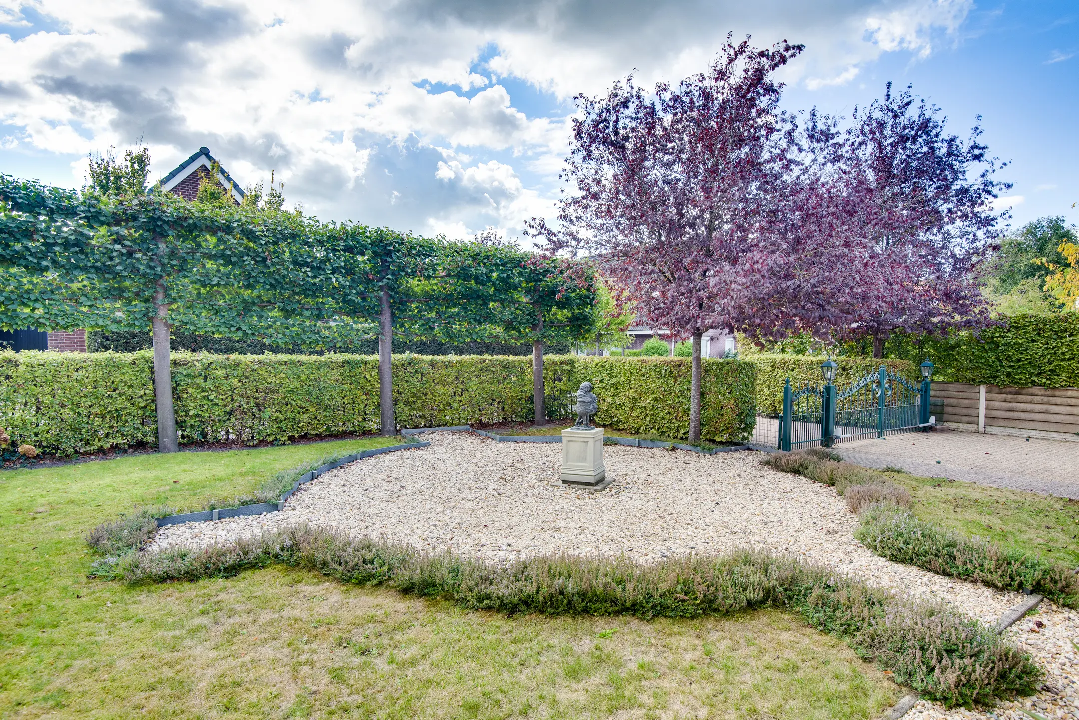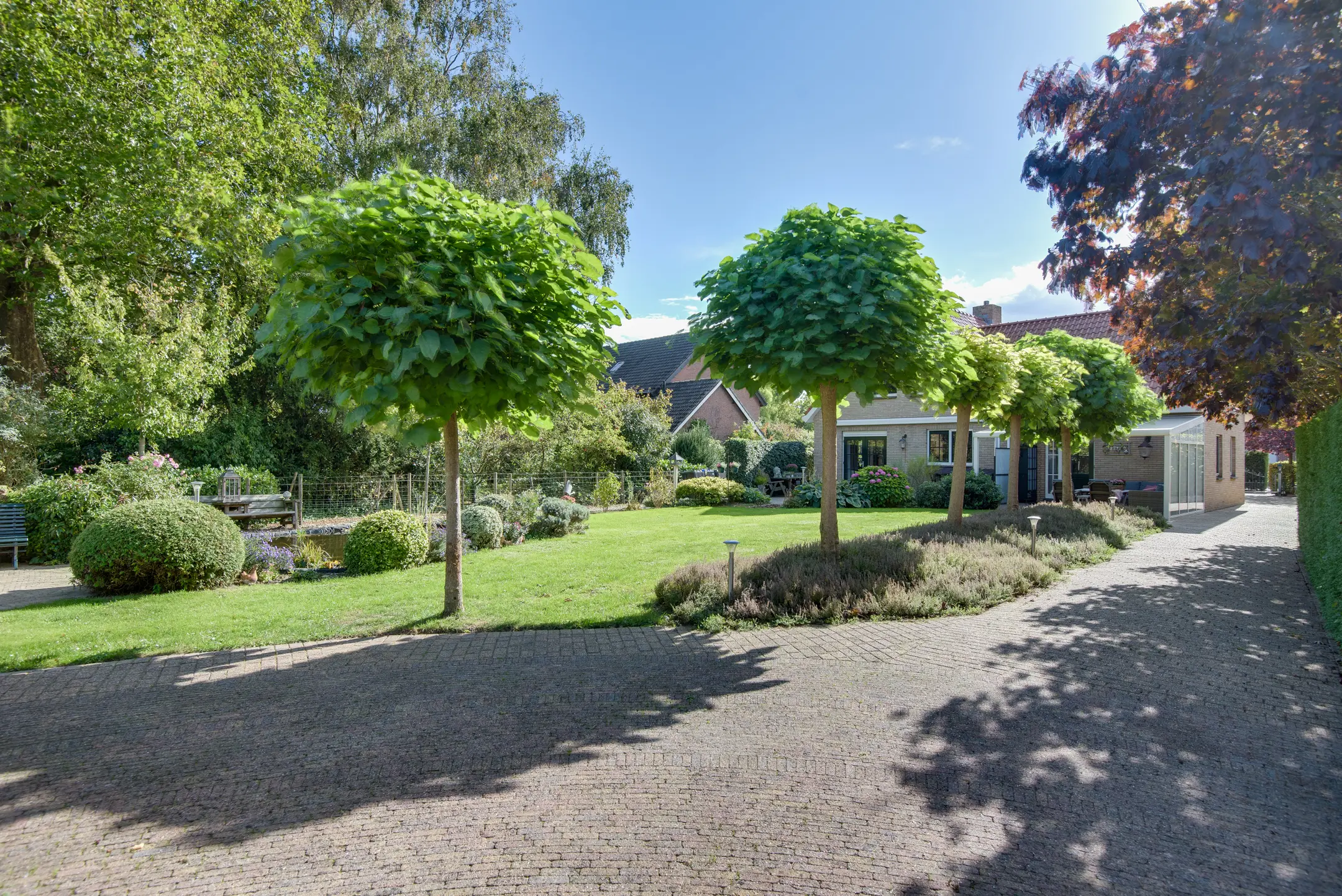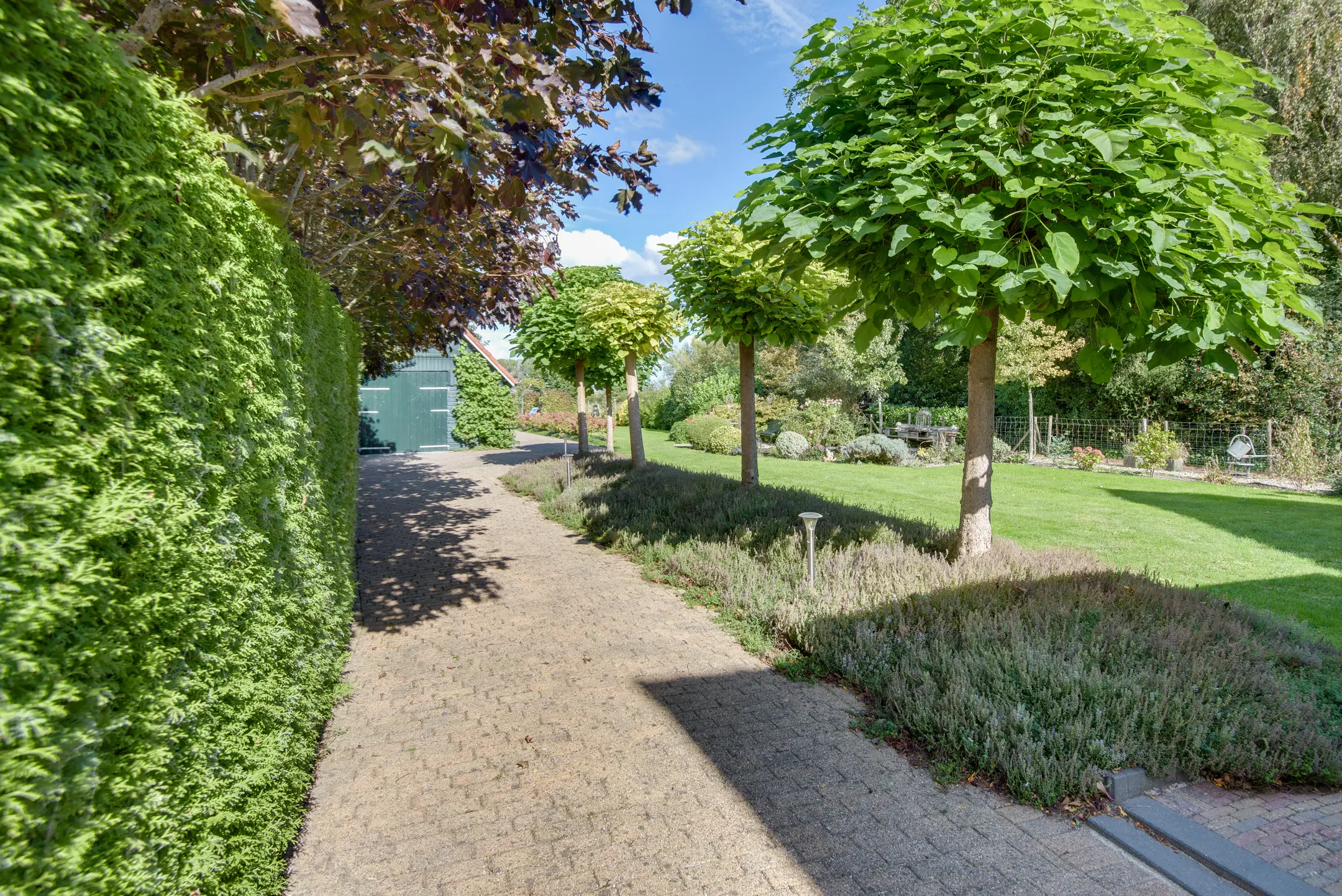 De achtertuin is een absolute eyecatcher. Met een lengte van maar liefst 110 m diep (!) geniet je hier van ultieme rust, privacy en natuur. De tuin is prachtig aangelegd met een vijver, sierbeplanting en diverse bomen. Of je nu wilt ontspannen onder de overkapping, tuinieren of wandelen op eigen terrein: dit perceel maakt het mogelijk.
