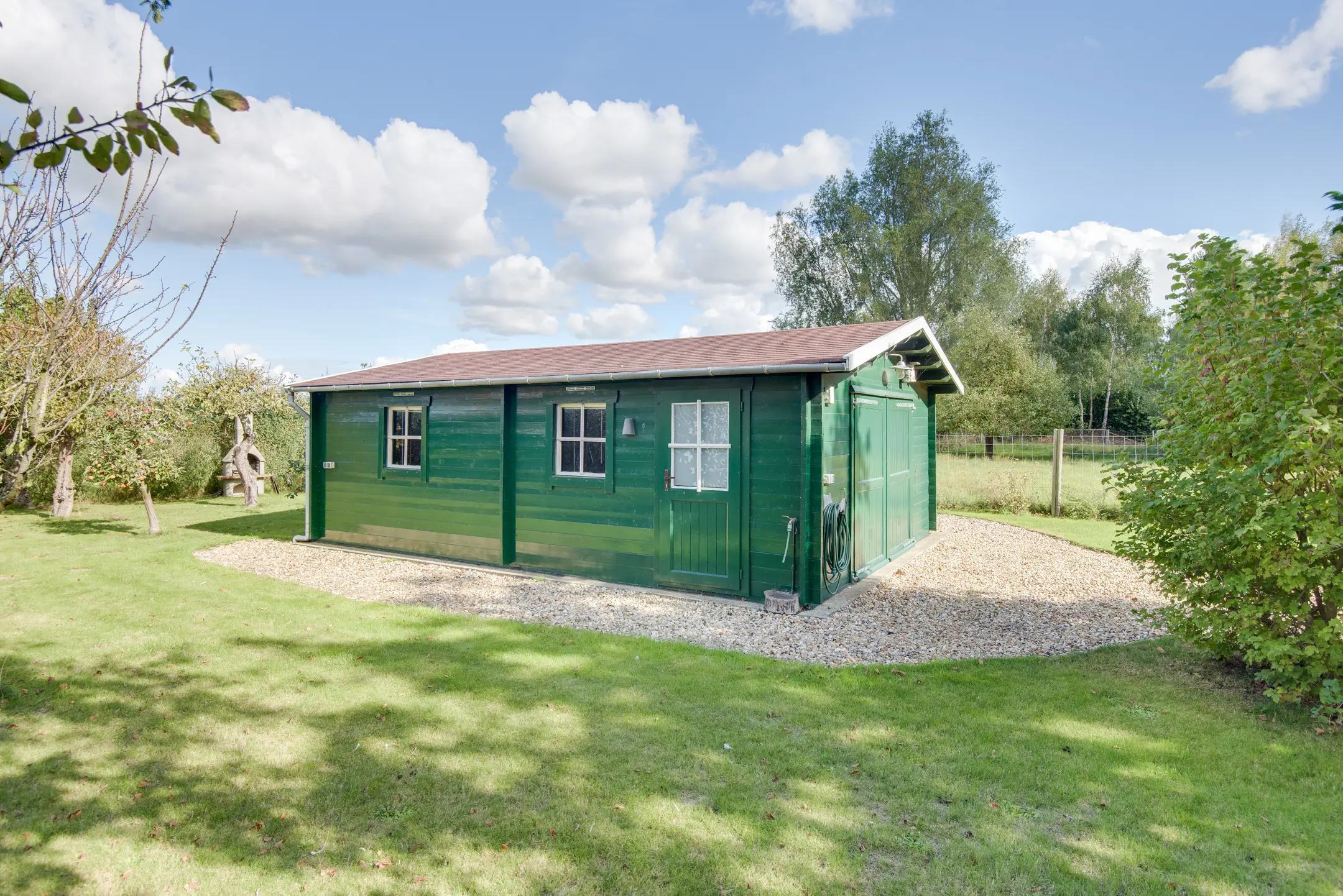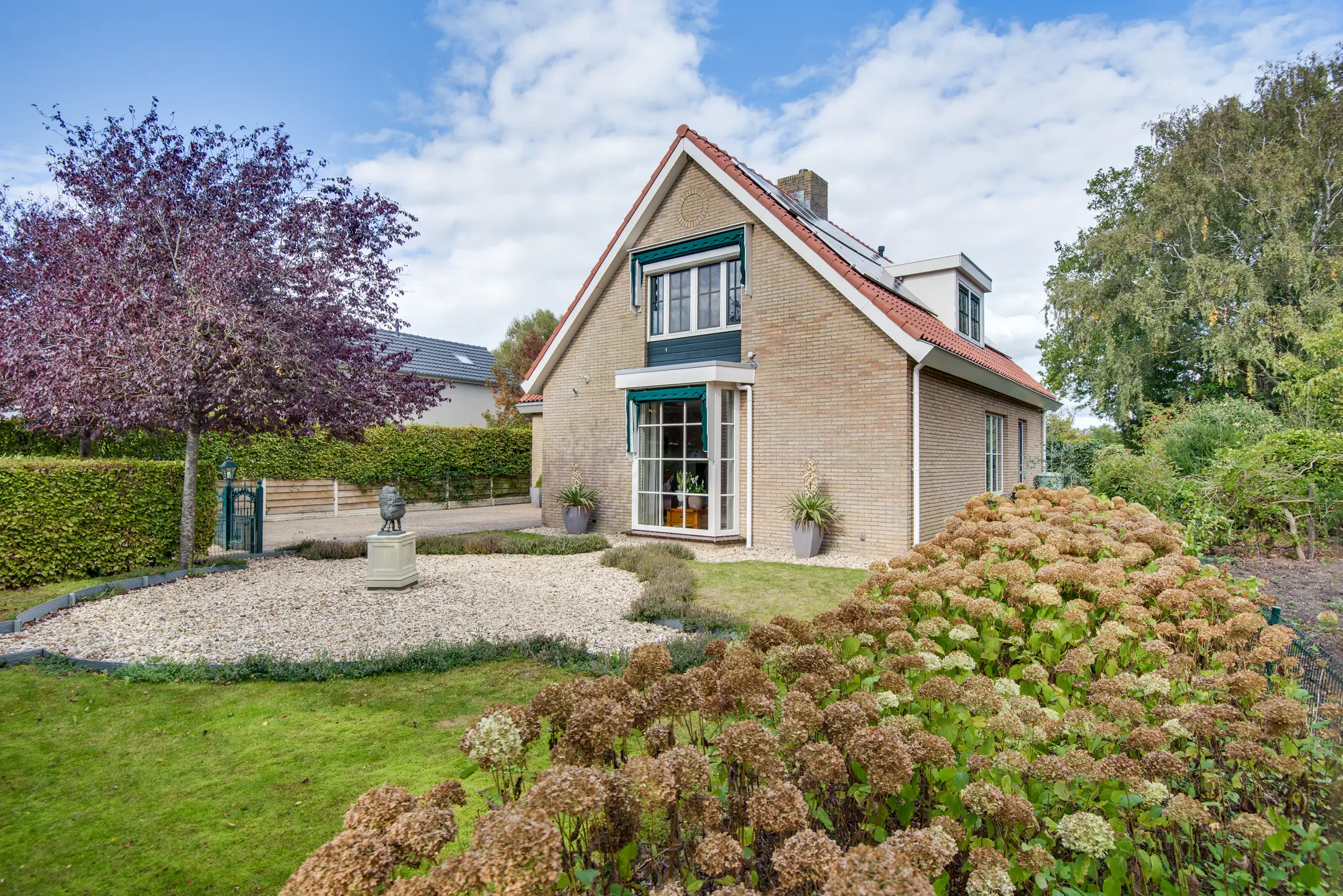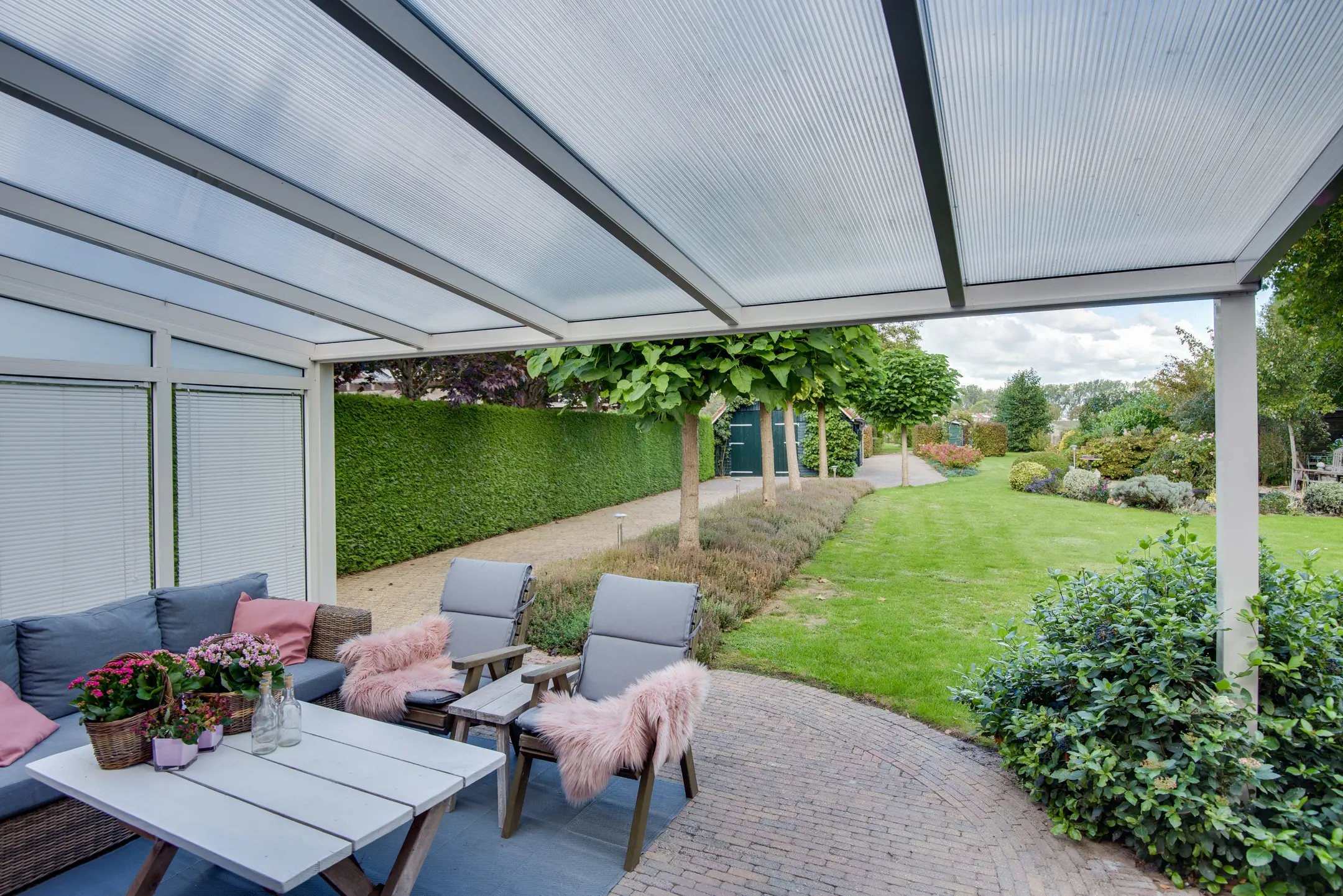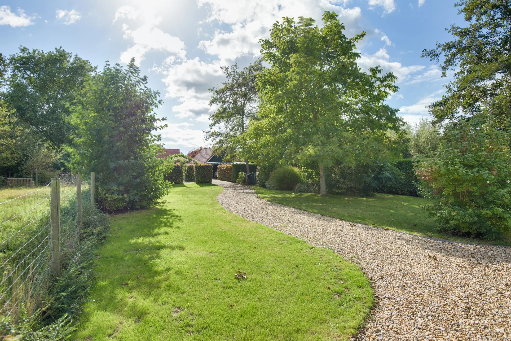 De achtertuin is een absolute eyecatcher. Met een lengte van maar liefst 110 m diep (!) geniet je hier van ultieme rust, privacy en natuur. De tuin is prachtig aangelegd met een vijver, sierbeplanting en diverse bomen. Of je nu wilt ontspannen onder de overkapping, tuinieren of wandelen op eigen terrein: dit perceel maakt het mogelijk.