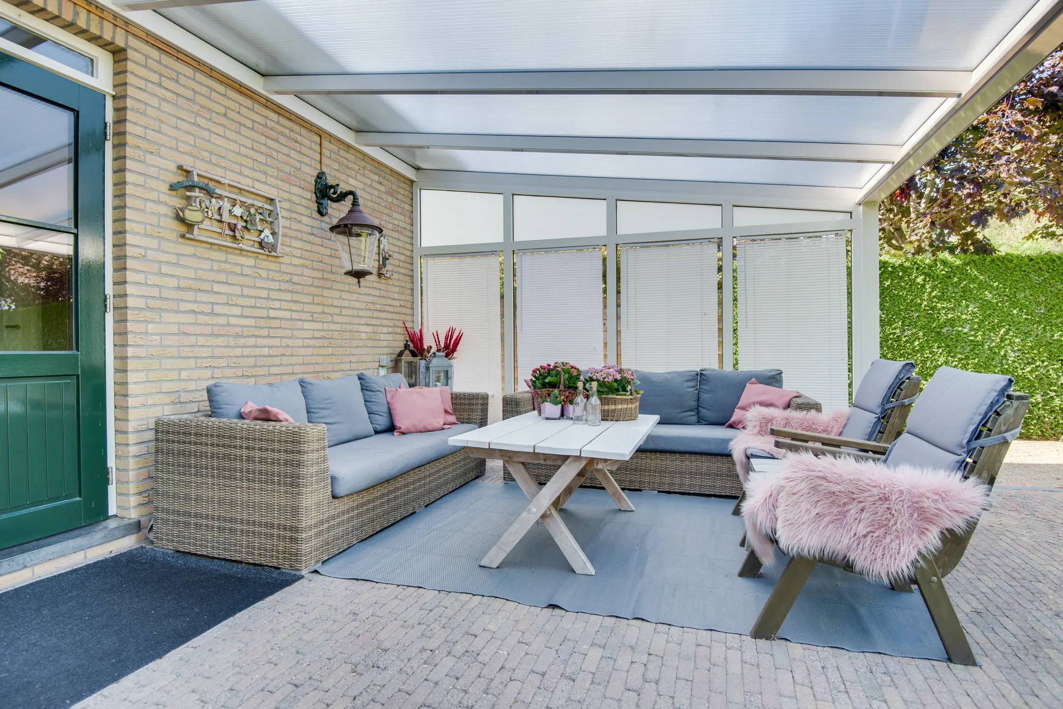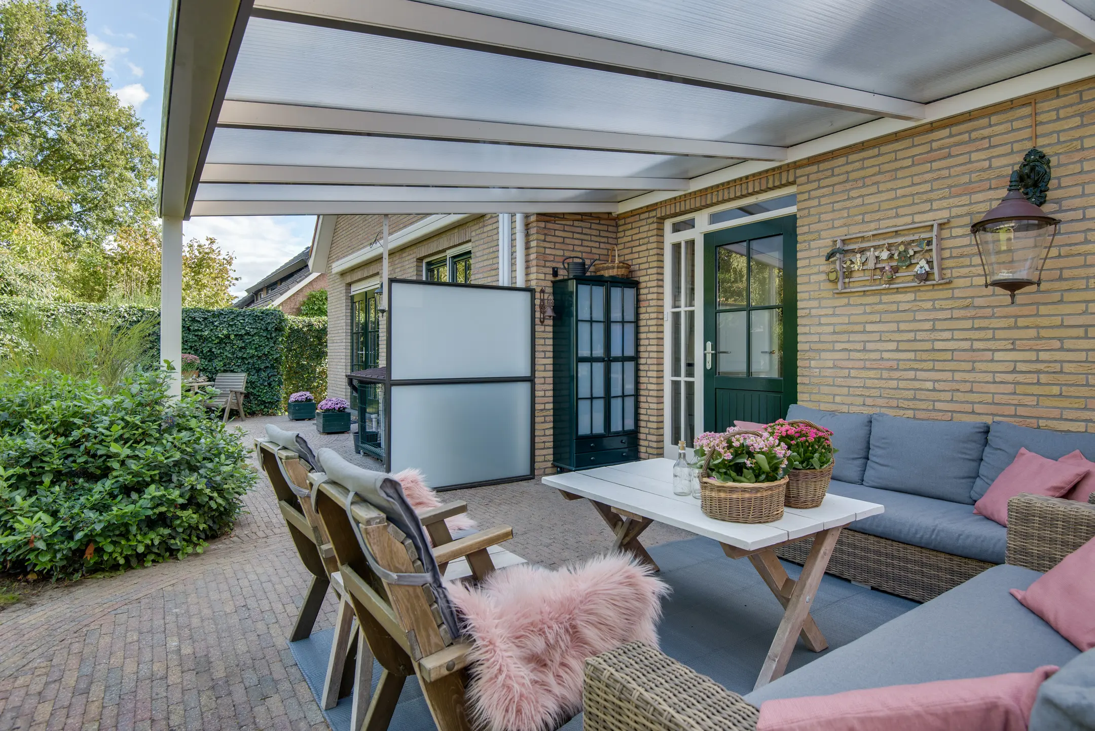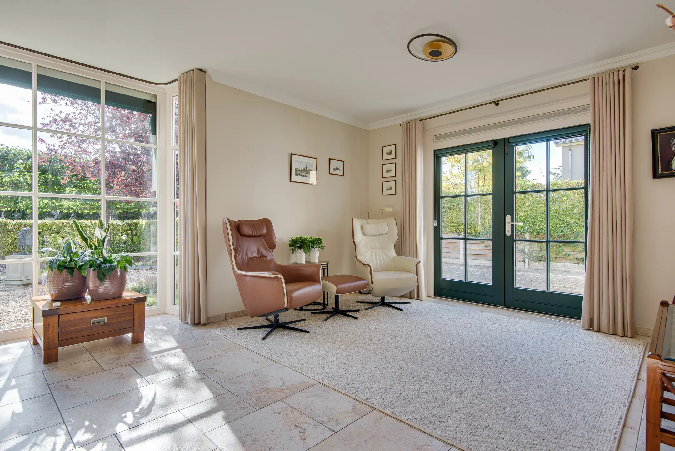 terrasdeuren naar buiten aan voor- en achterzijde en airconditioning.