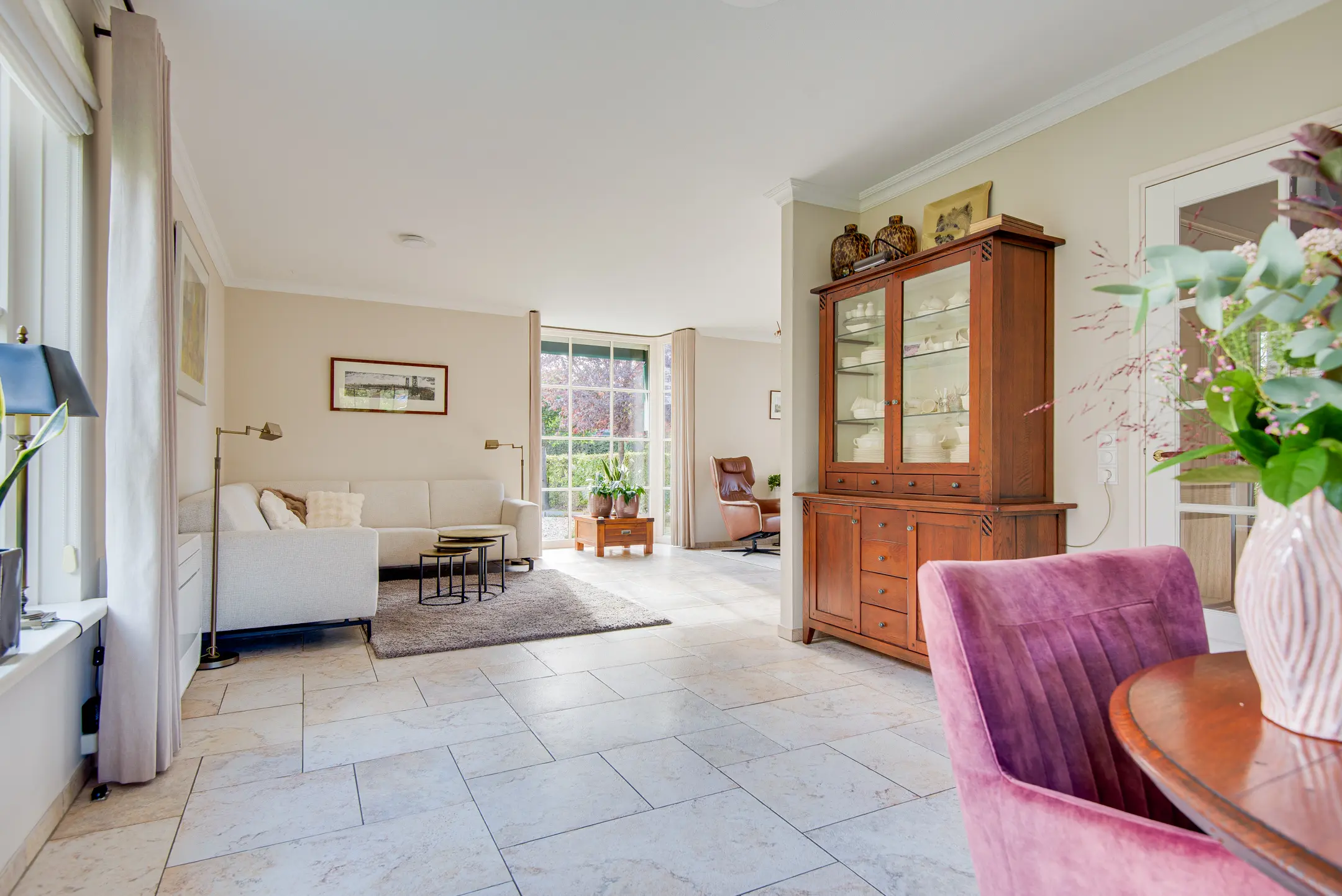 De woning biedt volop ruimte voor een gezin, werken aan huis of het inrichten van een hobbykamer. De woonkamer straalt licht en sfeer uit en biedt uitzicht op de royale tuin. De keuken is praktisch ingericht en vormt een fijne centrale plek in huis.