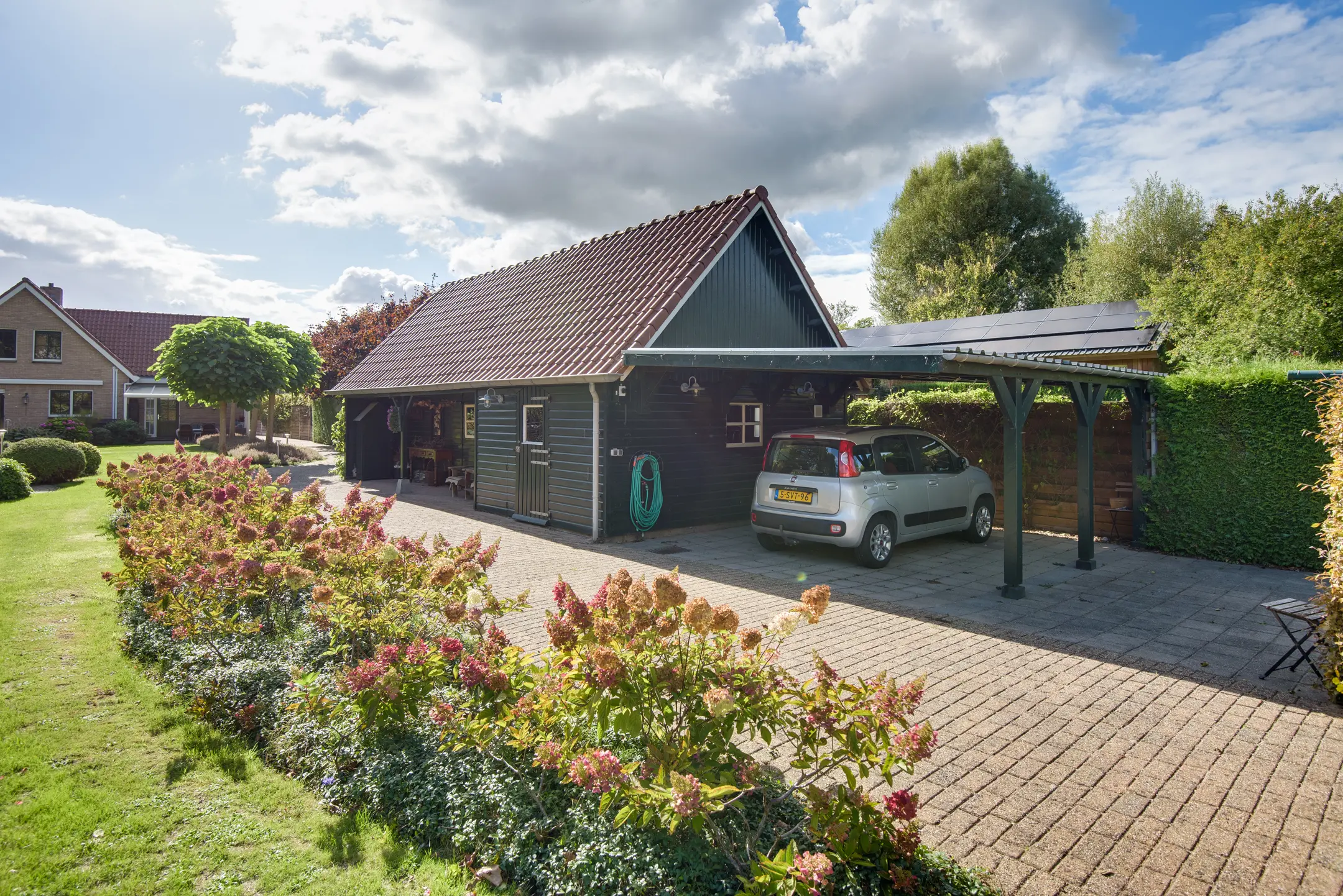 - Vrijstaande garage met carport