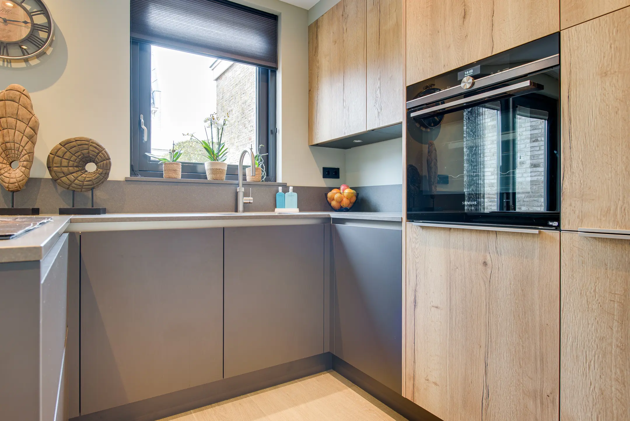 - Nette Tieleman keuken (2023) in U-opstelling voorzien van diverse inbouwapparatuur (Siemens), o.a. kookplaat met geïntrigeerde afzuigsysteem, stoomoven en Quoocker.