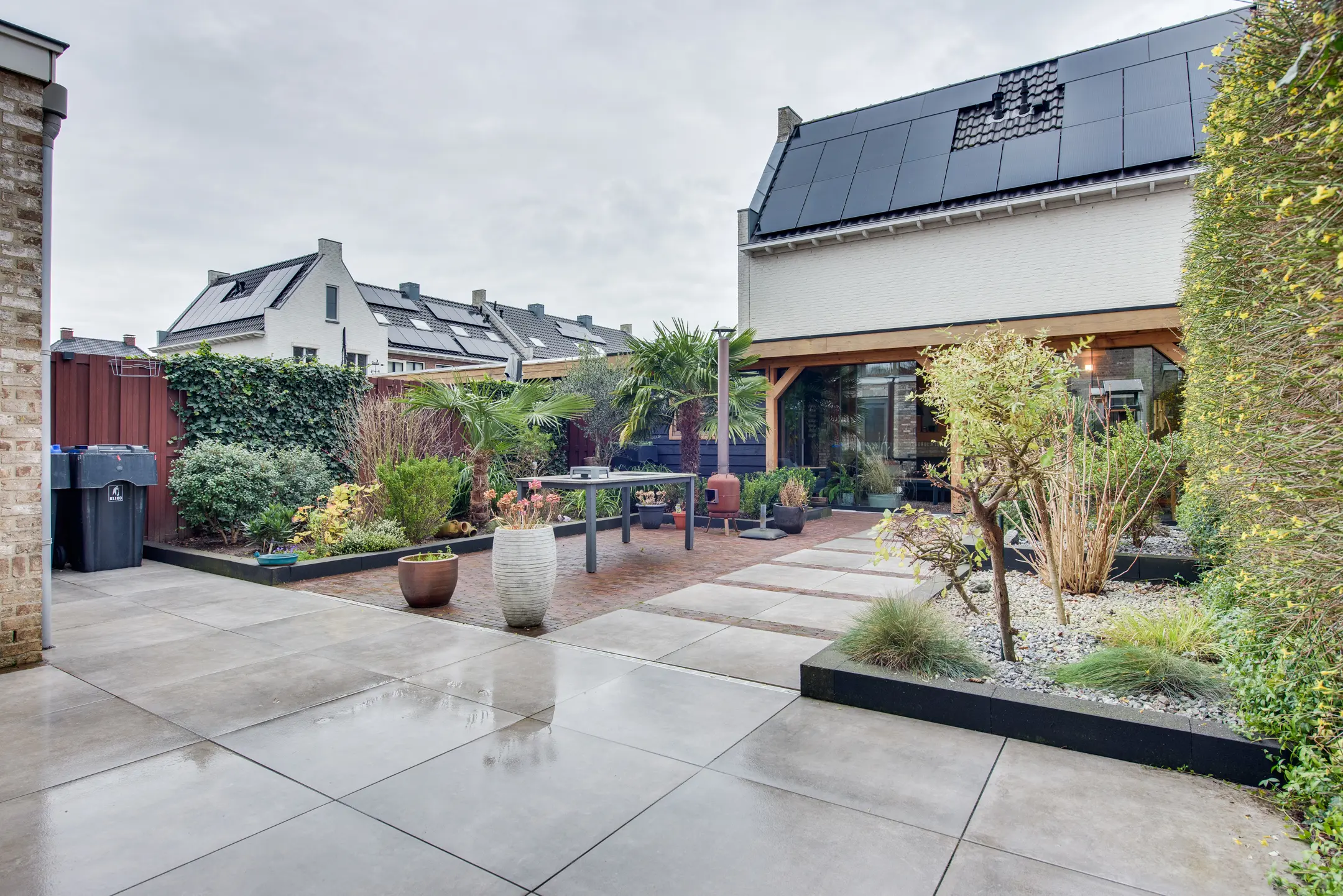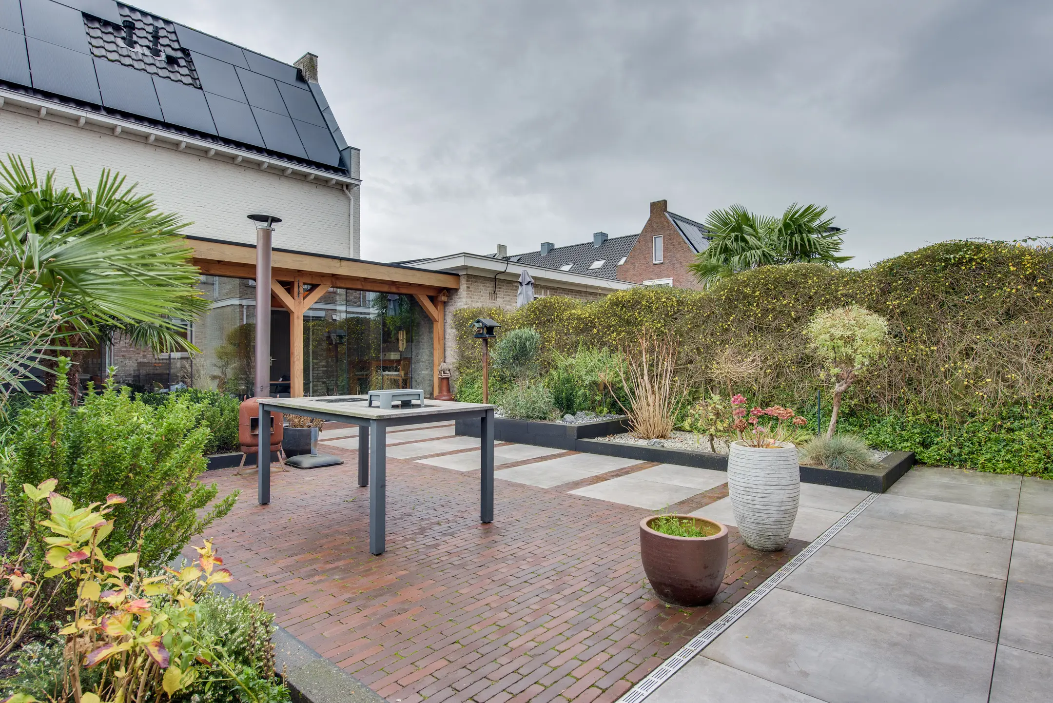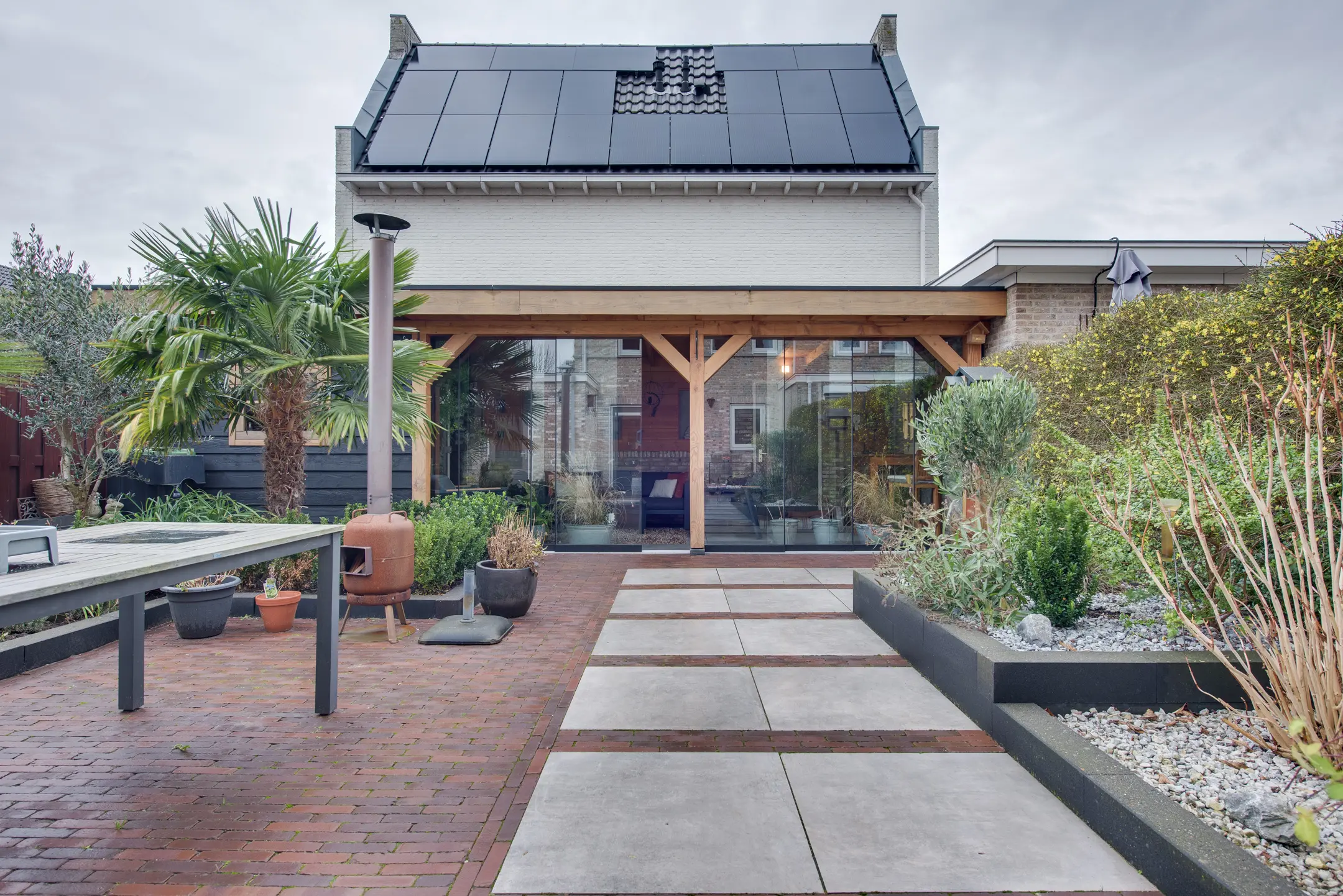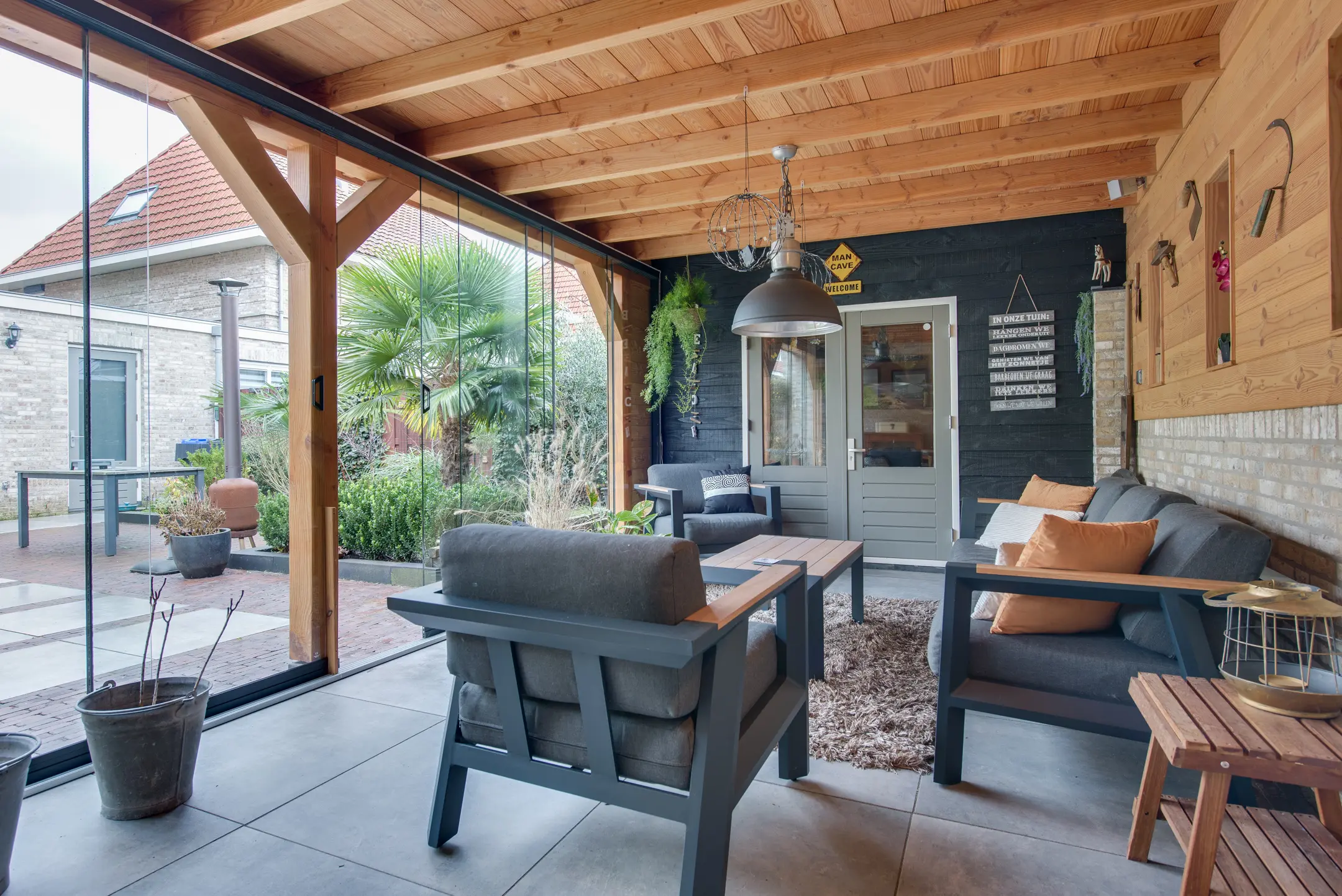 Aan de achterzijde bevindt zich de fraai aangelegde tuin op het noorden, waar je dankzij de luxe overkapping het hele jaar door kunt genieten van het buitenleven. Daarnaast is er een berging voor extra opslagruimte. De tuin biedt veel privacy en is onderhoudsvriendelijk ingericht.