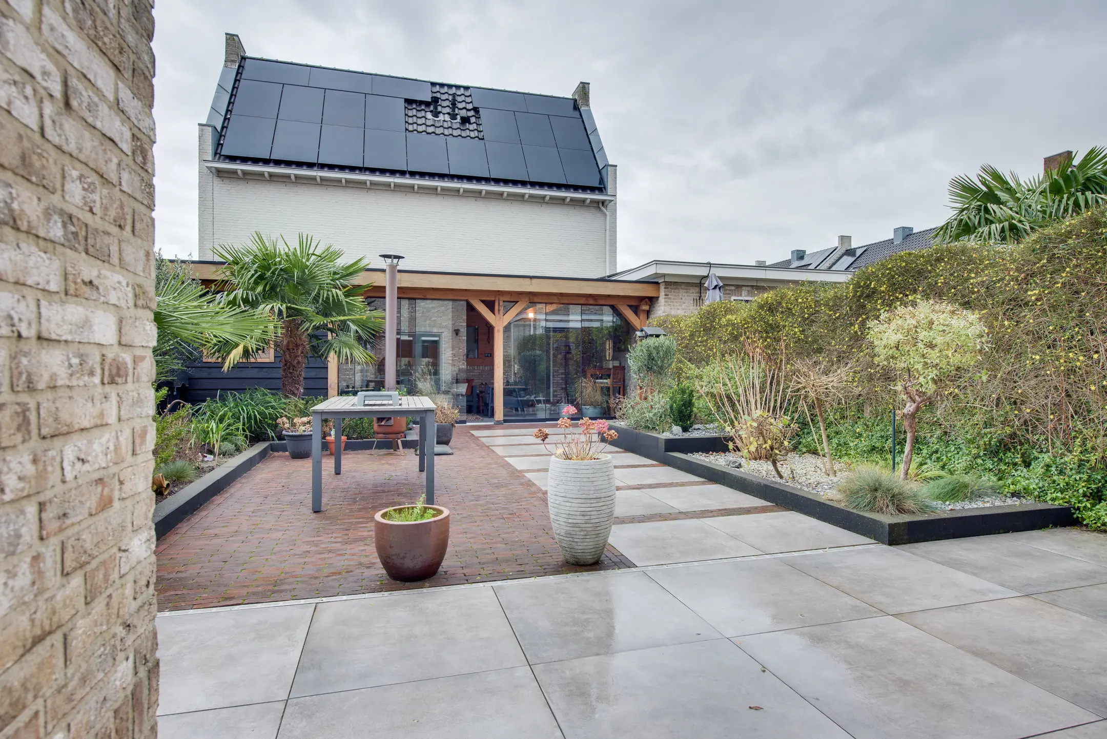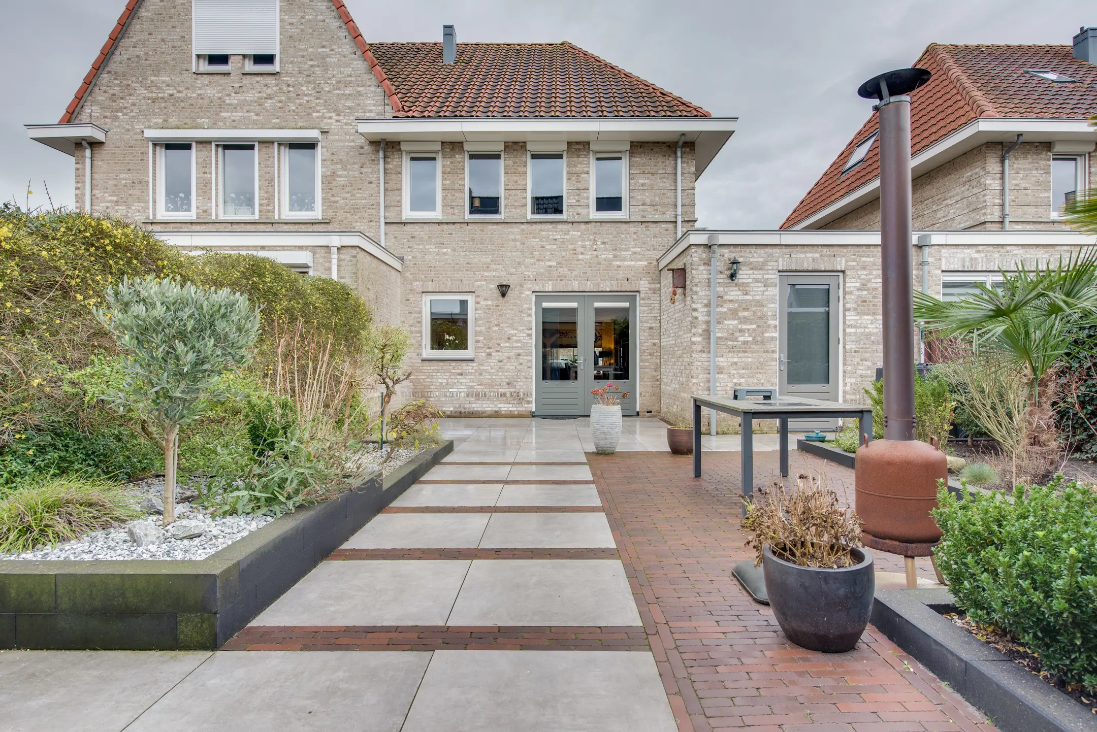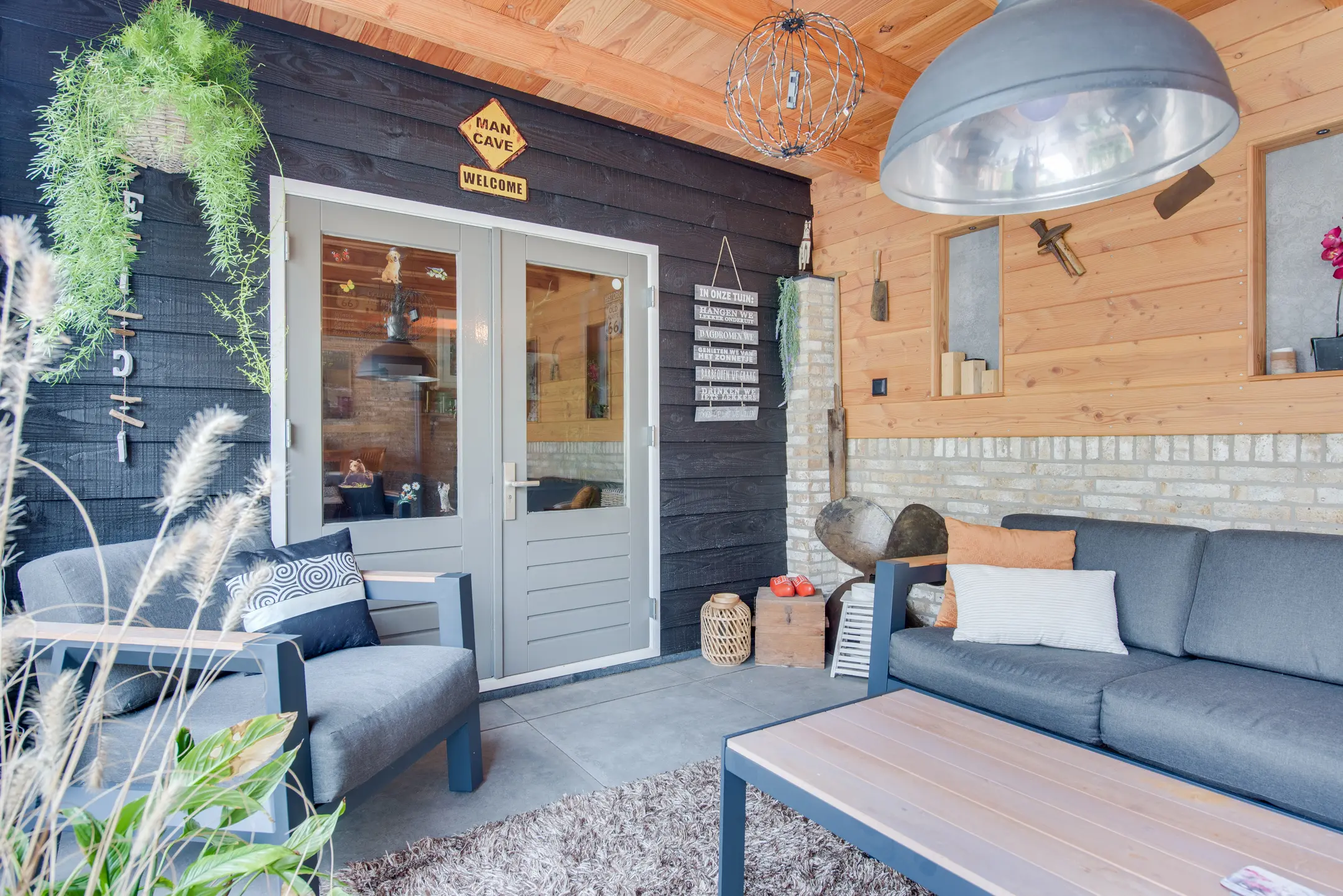 Aan de achterzijde bevindt zich de fraai aangelegde tuin op het noorden, waar je dankzij de luxe overkapping het hele jaar door kunt genieten van het buitenleven. Daarnaast is er een berging voor extra opslagruimte. De tuin biedt veel privacy en is onderhoudsvriendelijk ingericht.