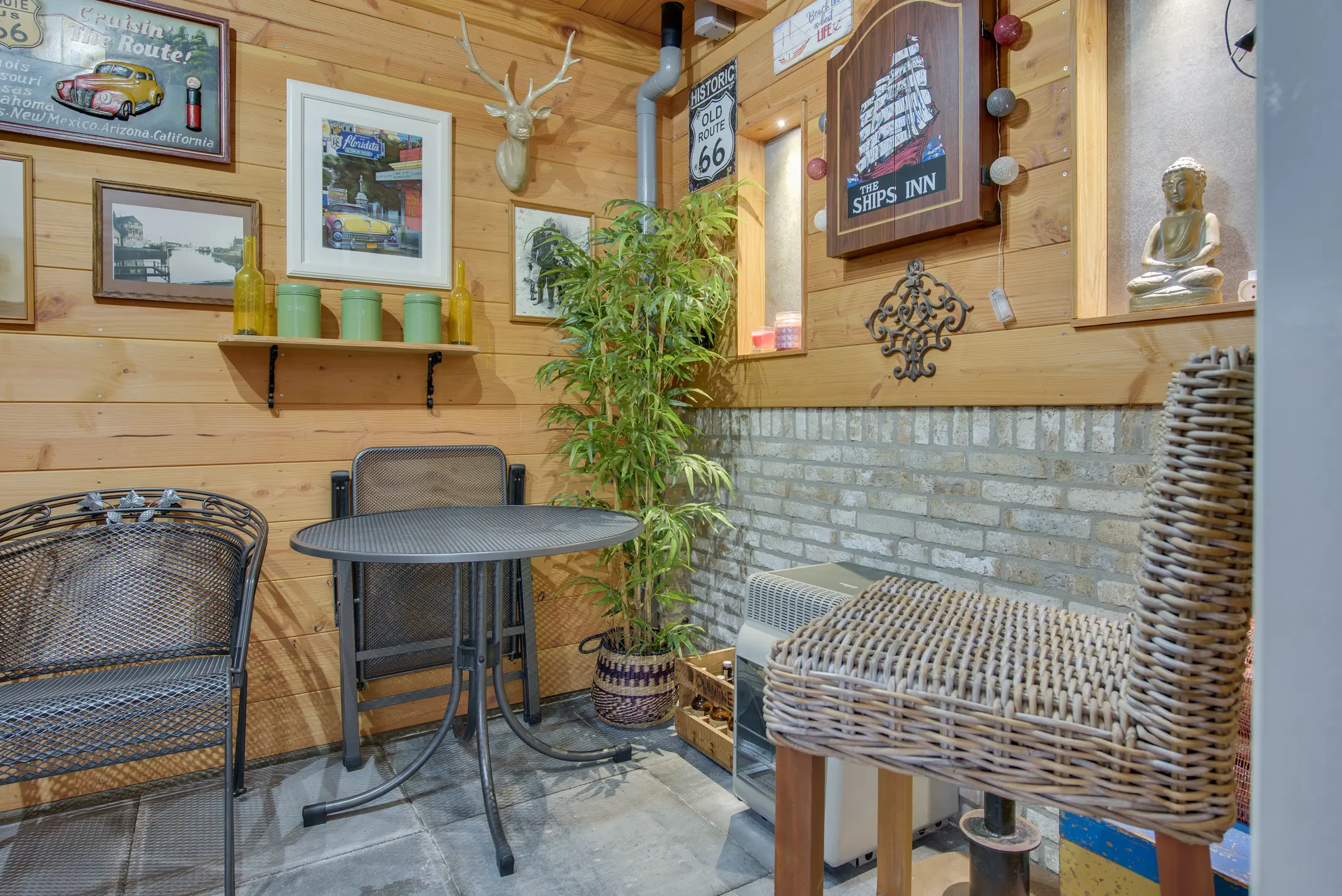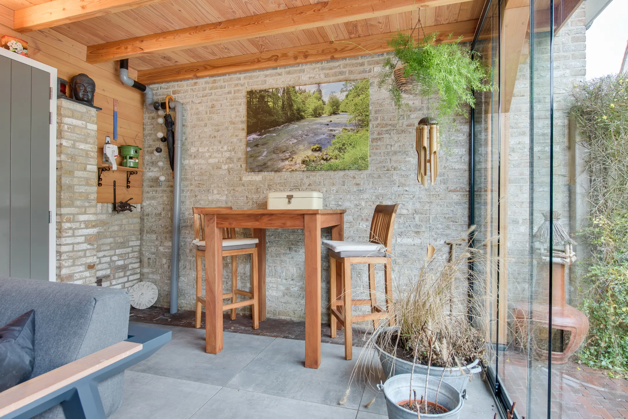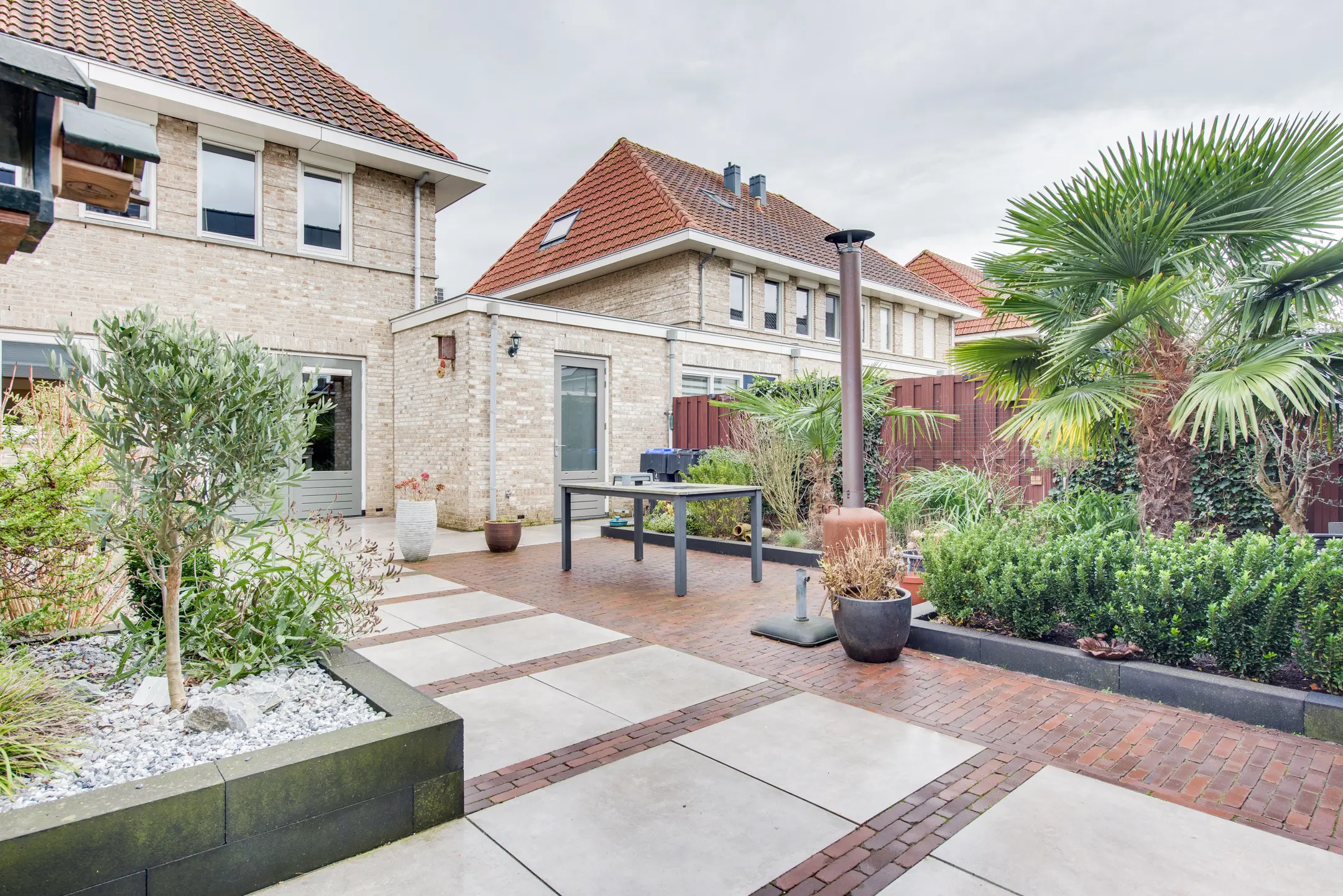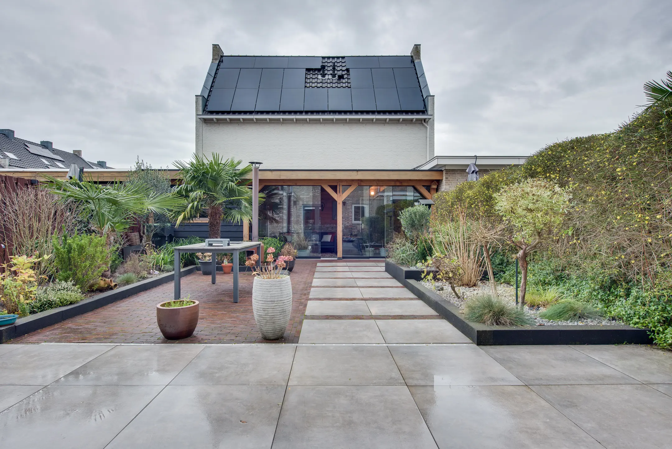 Aan de achterzijde bevindt zich de fraai aangelegde tuin op het noorden, waar je dankzij de luxe overkapping het hele jaar door kunt genieten van het buitenleven. Daarnaast is er een berging voor extra opslagruimte. De tuin biedt veel privacy en is onderhoudsvriendelijk ingericht.