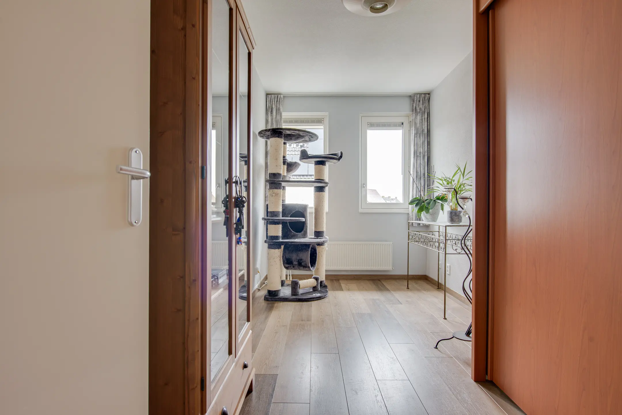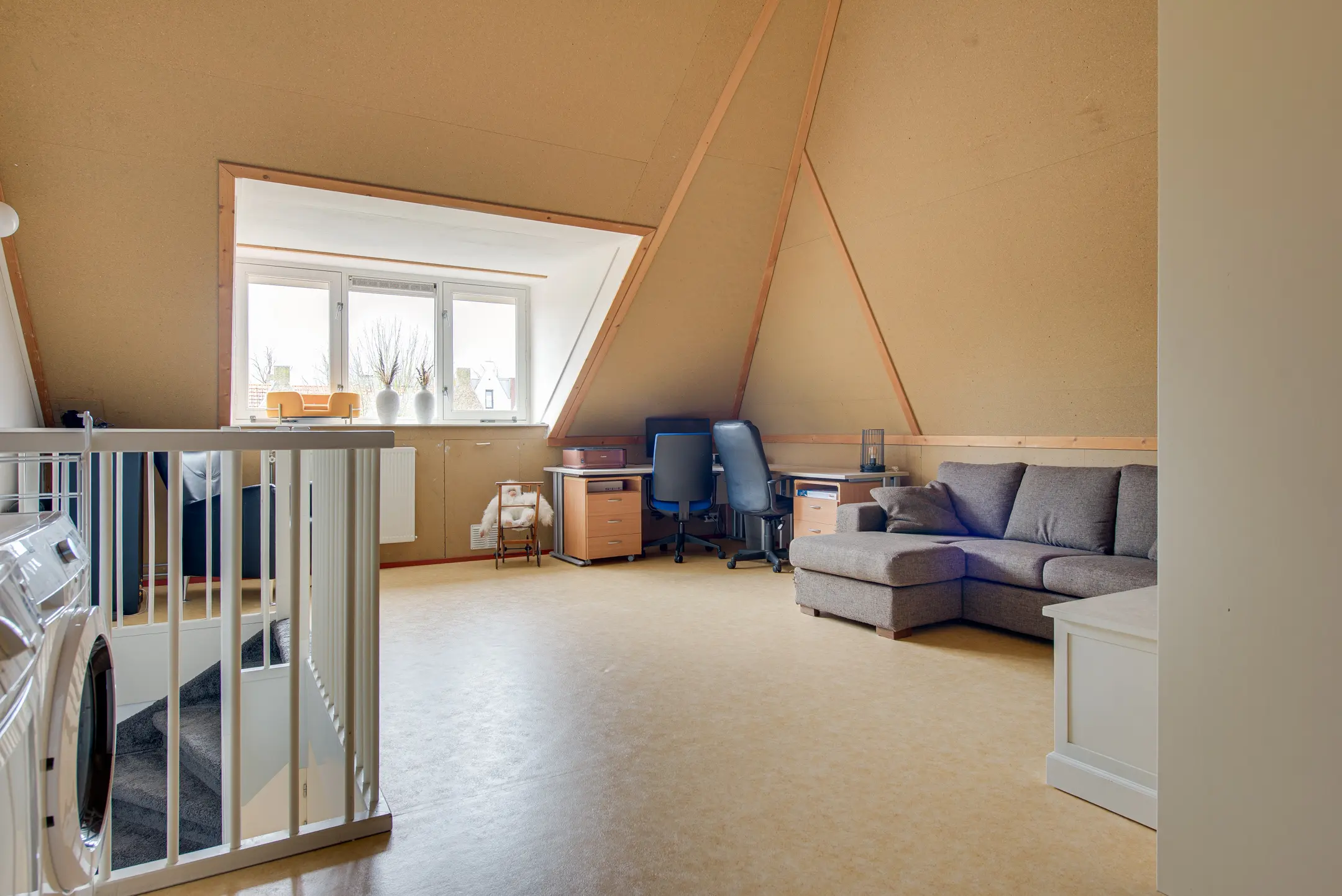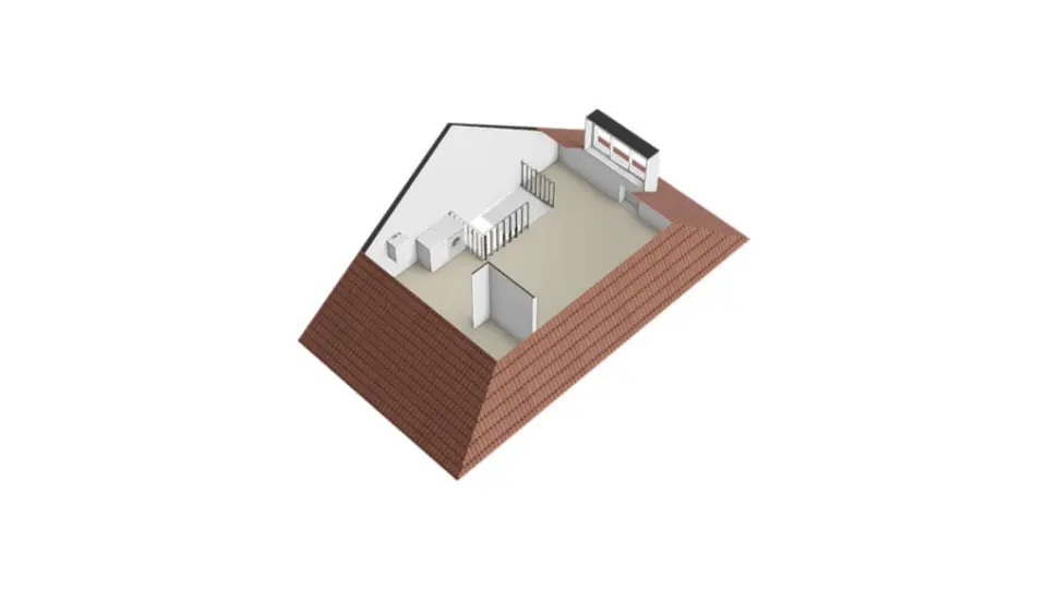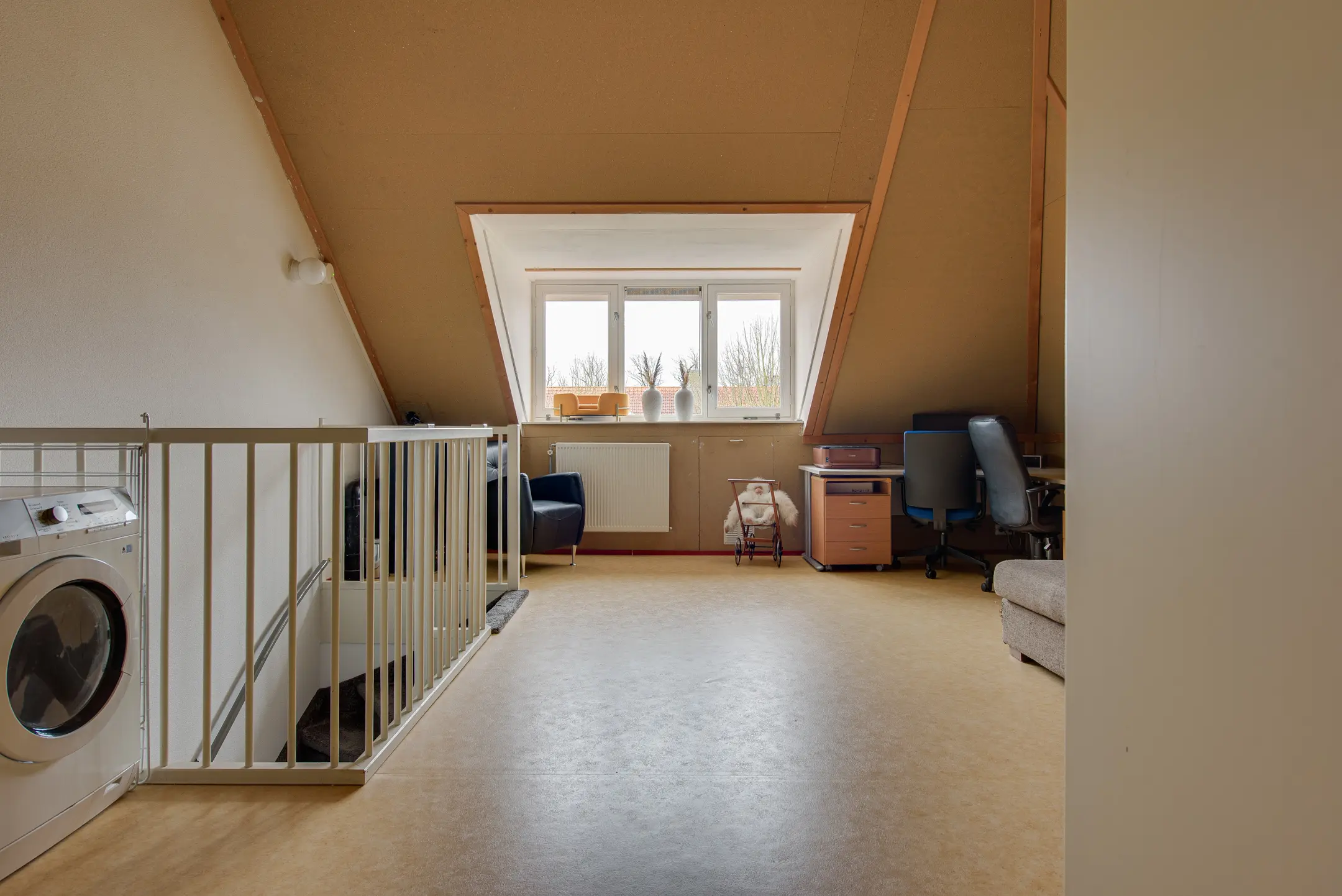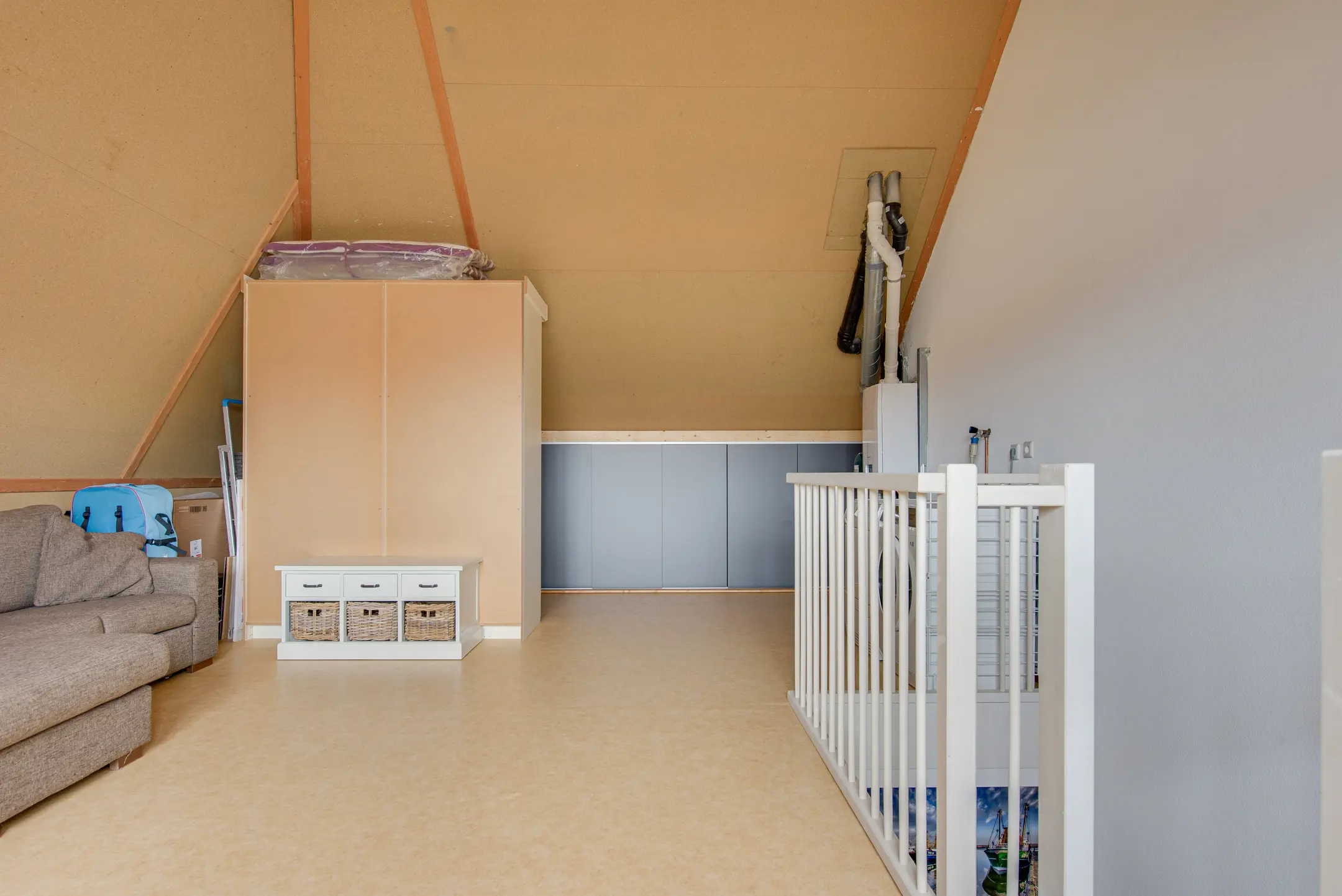 - Ruime open zolder met dakkapel met rolluik, CV-opstelling (Remeha 2023), bergruimte achter knieschot en witgoedaansluiting. De mogelijkheid is er om een 4e of zelfs 5e slaapkamer te realiseren.