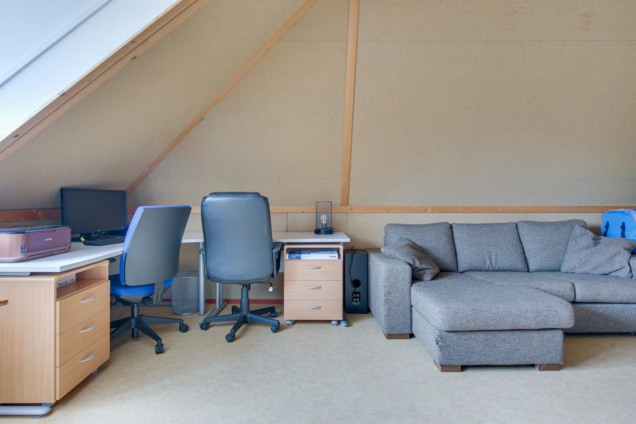 De woning beschikt over drie ruime slaapkamers op de eerste verdieping en een zeer royale zolderverdieping. Deze zolder biedt de mogelijkheid om eenvoudig één of zelfs twee extra slaapkamers, een werkruimte of hobbykamer te realiseren – ideaal voor groeiende gezinnen of thuiswerkers.