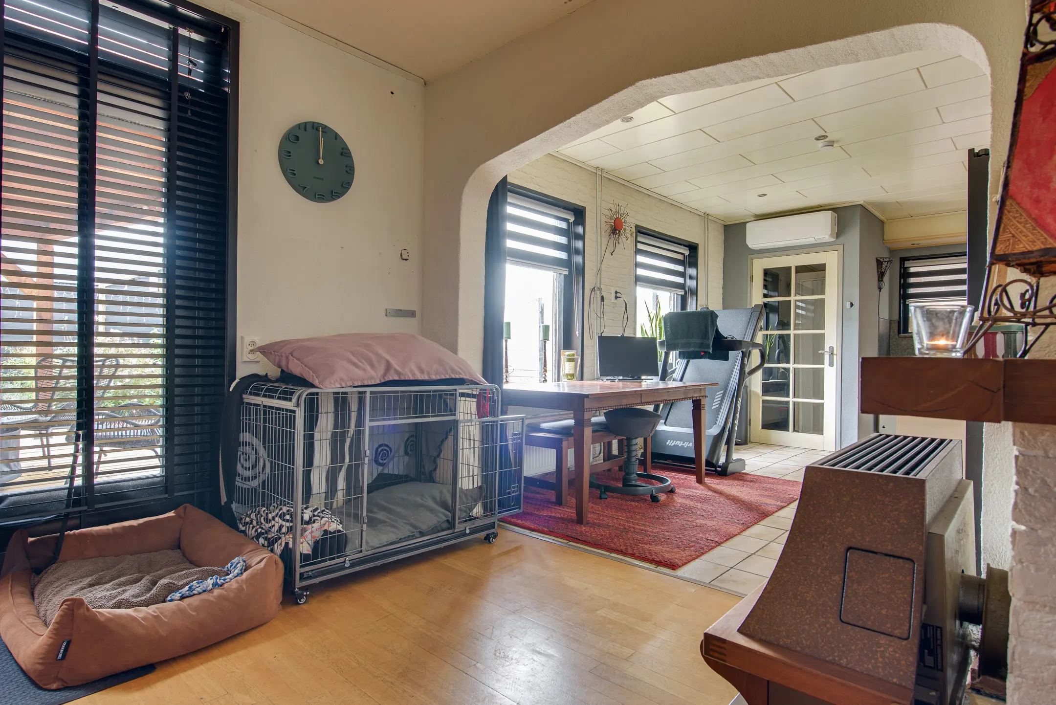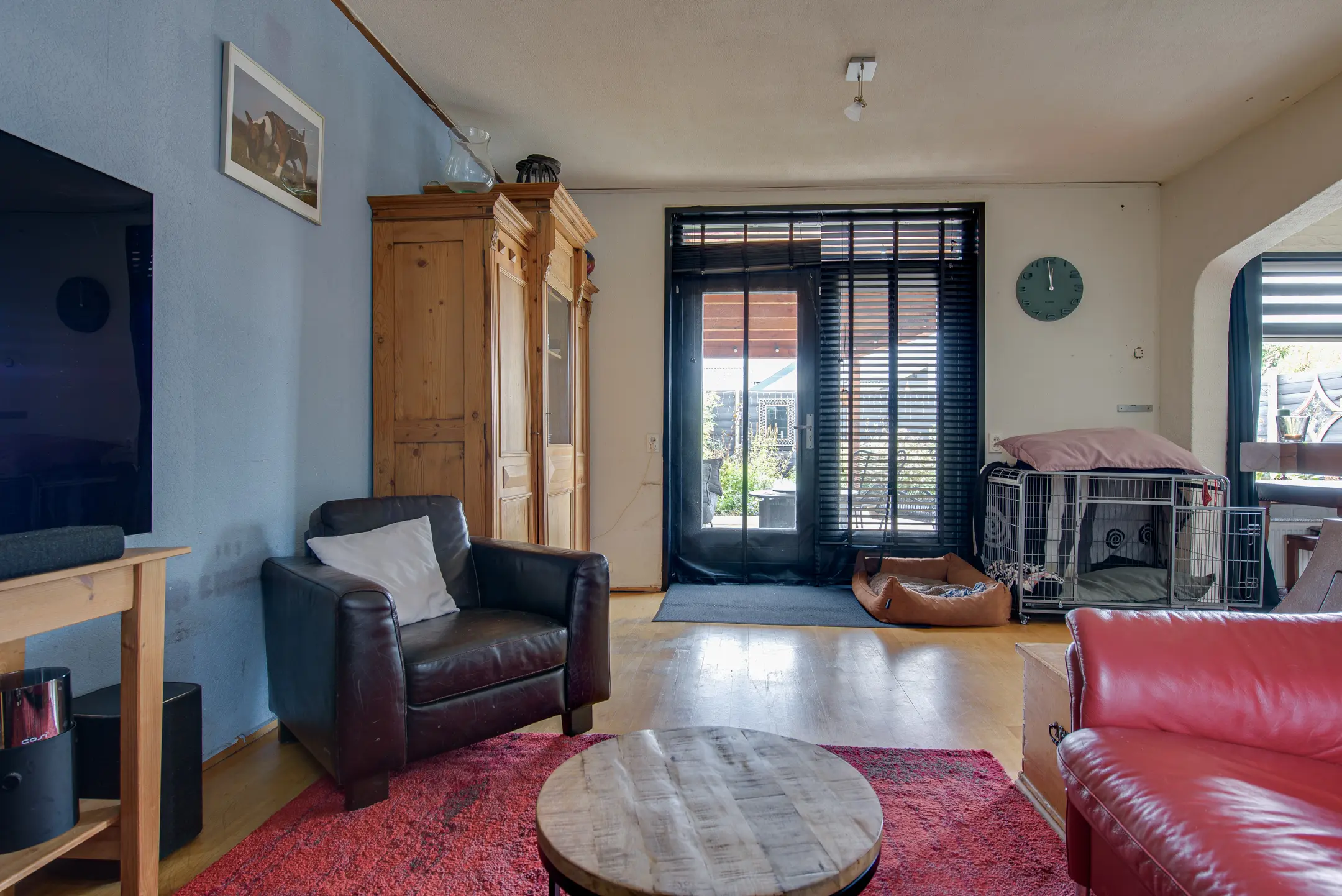 - Woonkamer met airco en dubbele deuren naar achtertuin