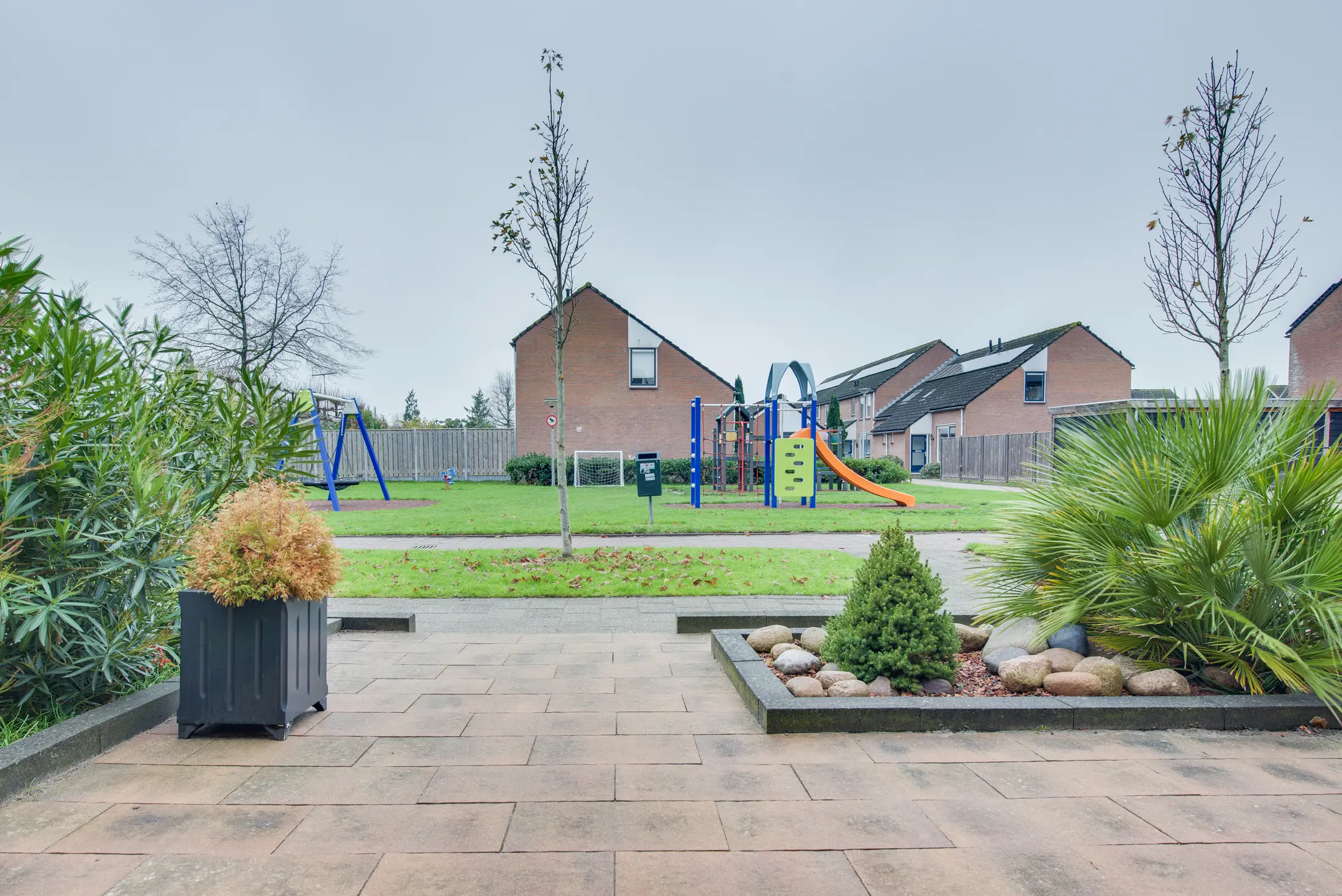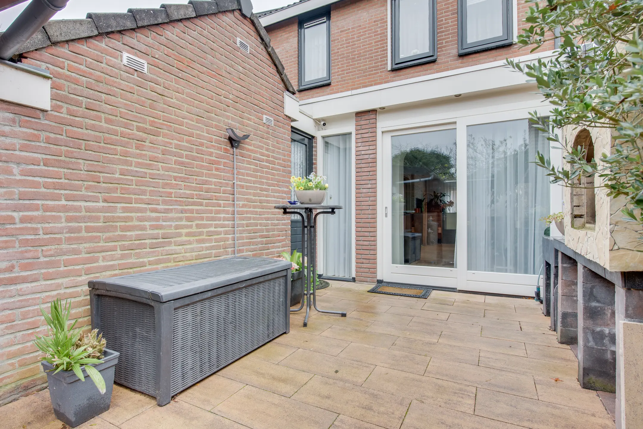 De achtertuin ligt op het noordoosten, is achterom bereikbaar en biedt volop mogelijkheden om heerlijk buiten te leven. Dankzij de overkapping kunt u er ook beschut zitten. Achter in de tuin staat een houten schuur, ideaal als extra opbergruimte voor fietsen, tuinspullen of hobby’s.