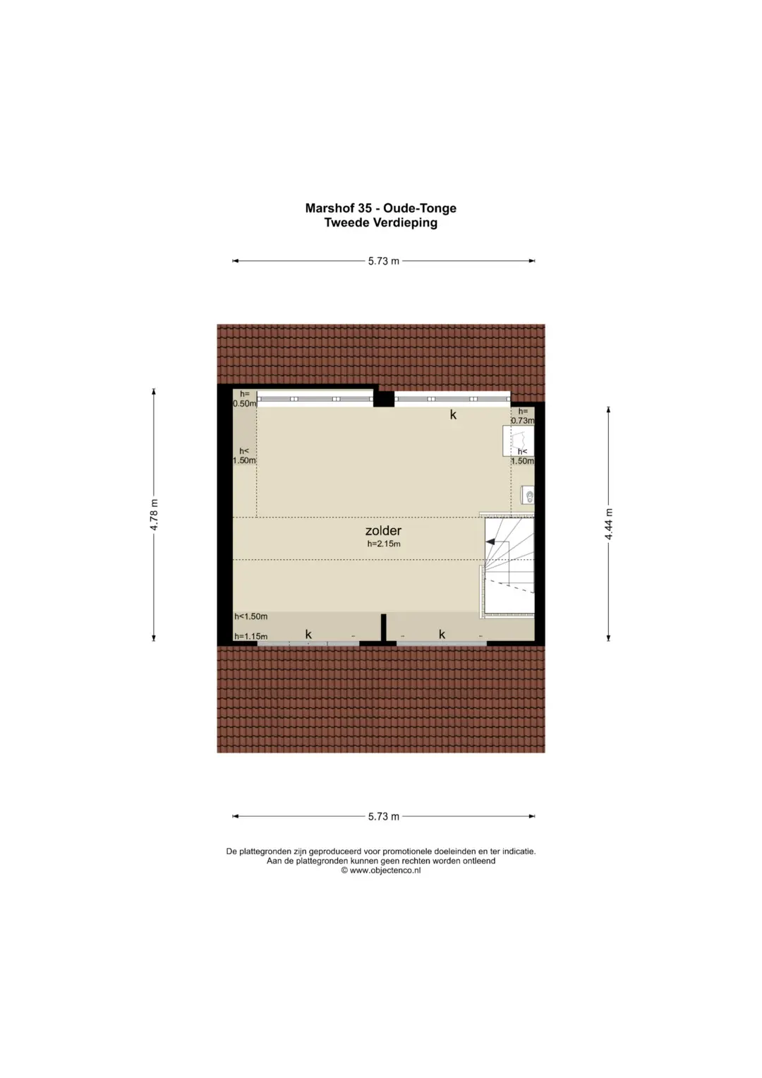 - Open zolder met brede dakkapel en bergruimte achter de knieschotten.