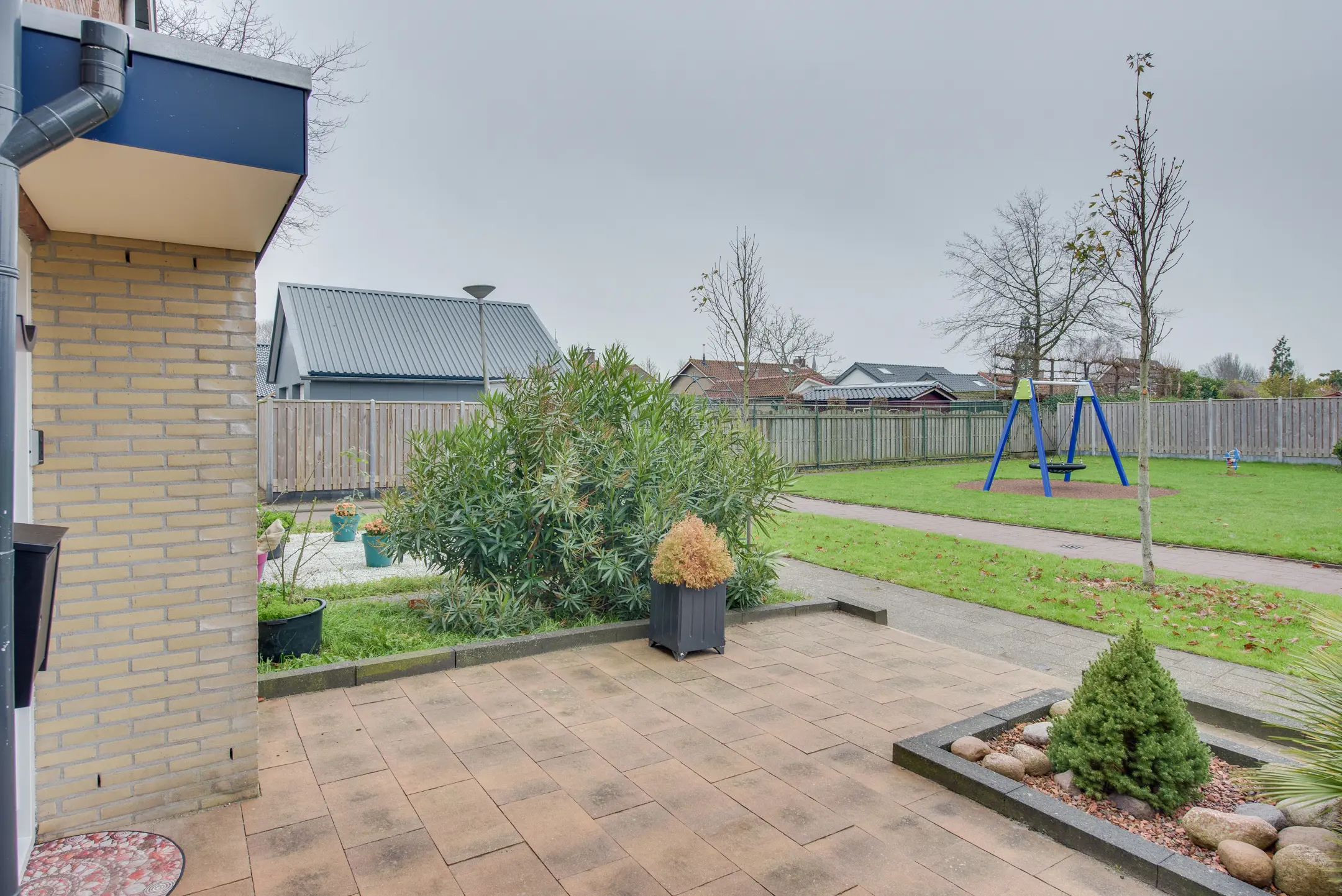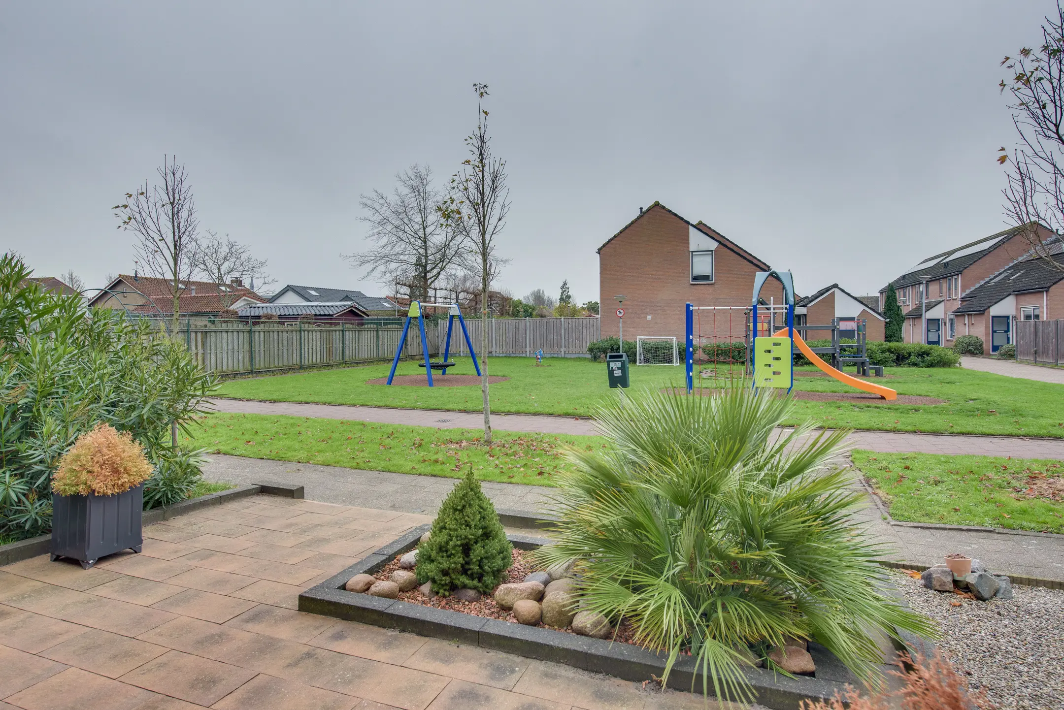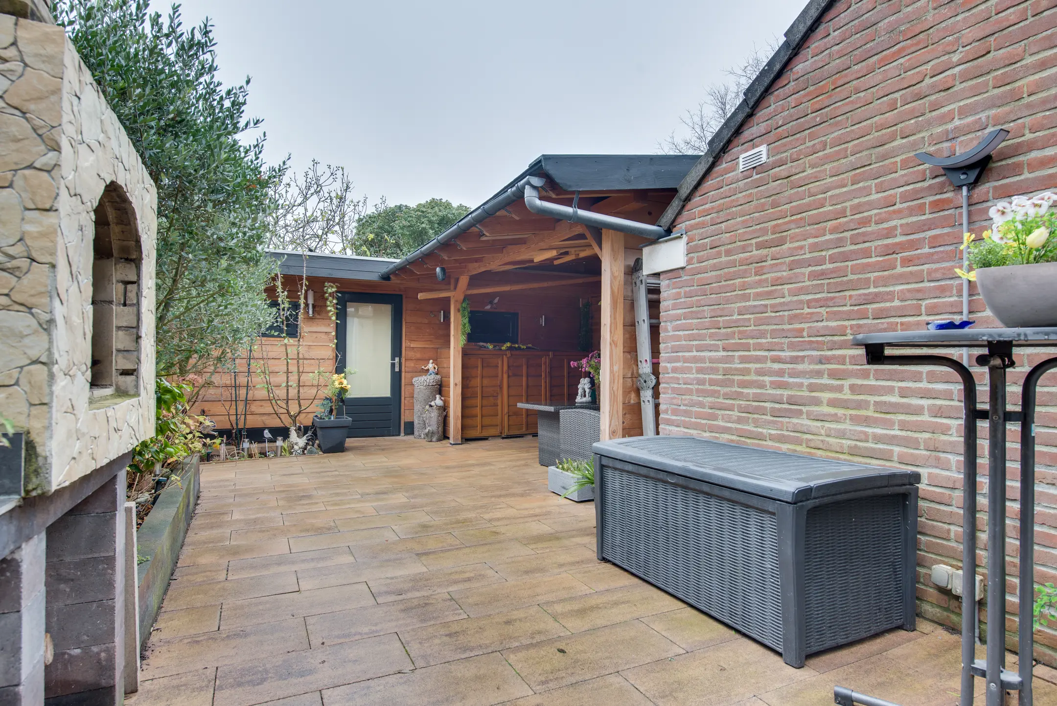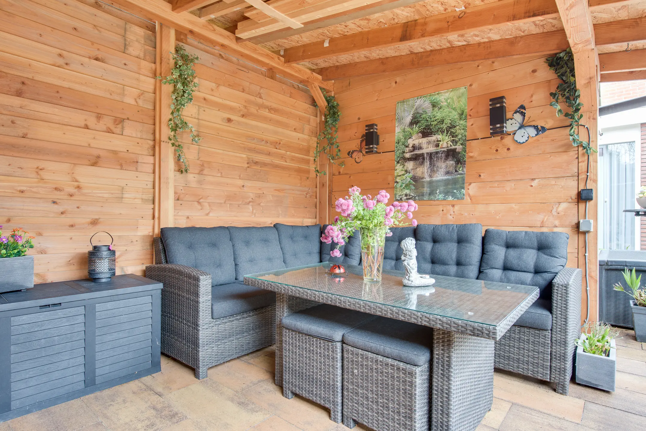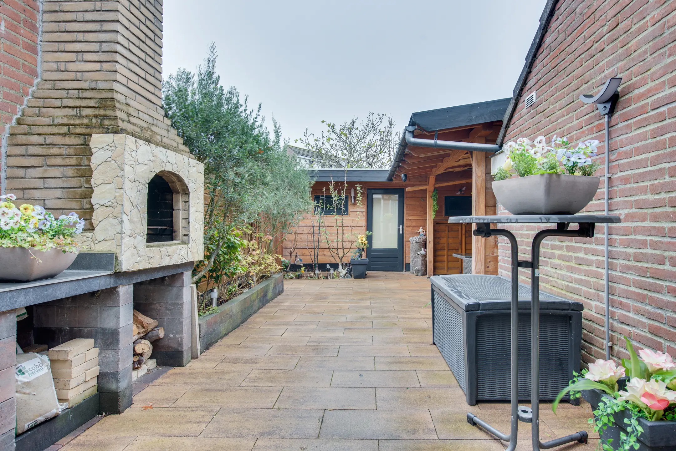 De achtertuin ligt op het noordoosten, is achterom bereikbaar en biedt volop mogelijkheden om heerlijk buiten te leven. Dankzij de overkapping kunt u er ook beschut zitten. Achter in de tuin staat een houten schuur, ideaal als extra opbergruimte voor fietsen, tuinspullen of hobby’s.