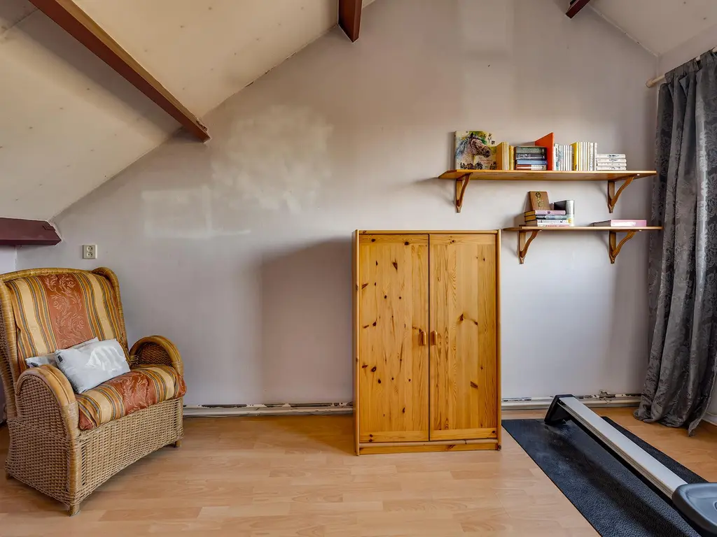 Tweede verdieping: Via een vaste trap bereikt u de tweede verdieping. Hier vindt u een overloop met berging en een vierde slaapkamer met bergruimte, perfect als logeerkamer, thuiskantoor of hobbyruimte.