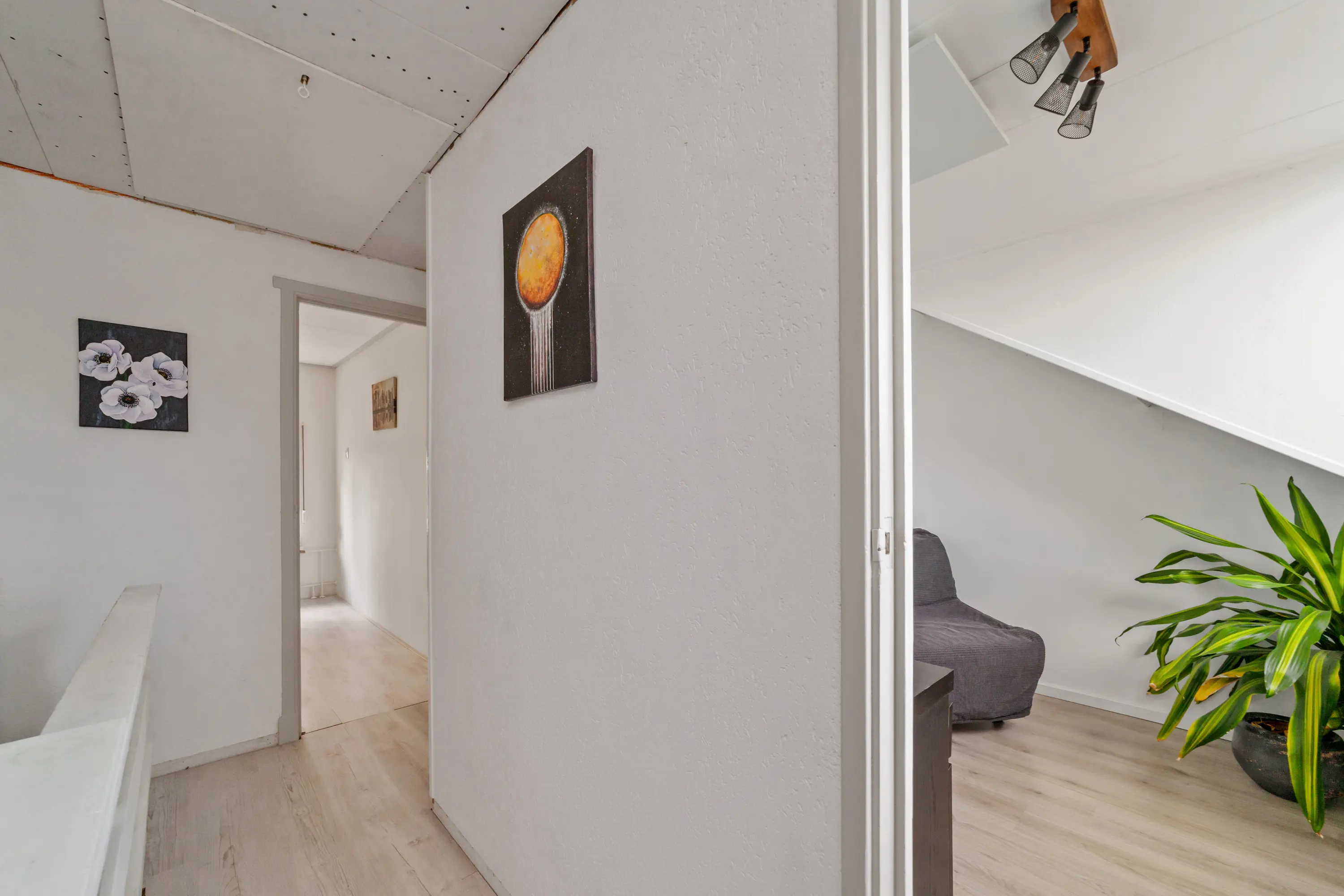 - Wanden en plafond van trapgat en overloop zijn zeer recent gestuct