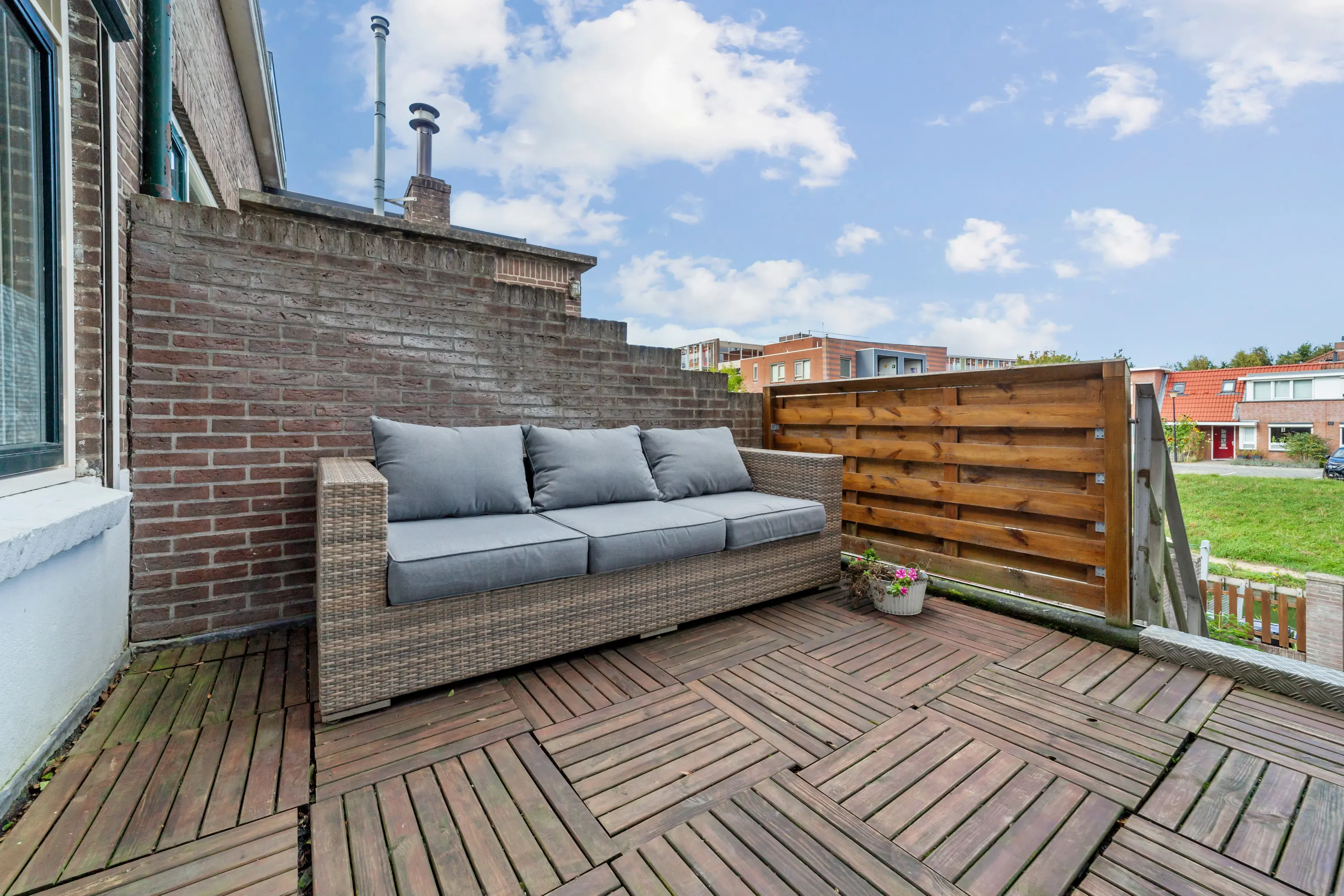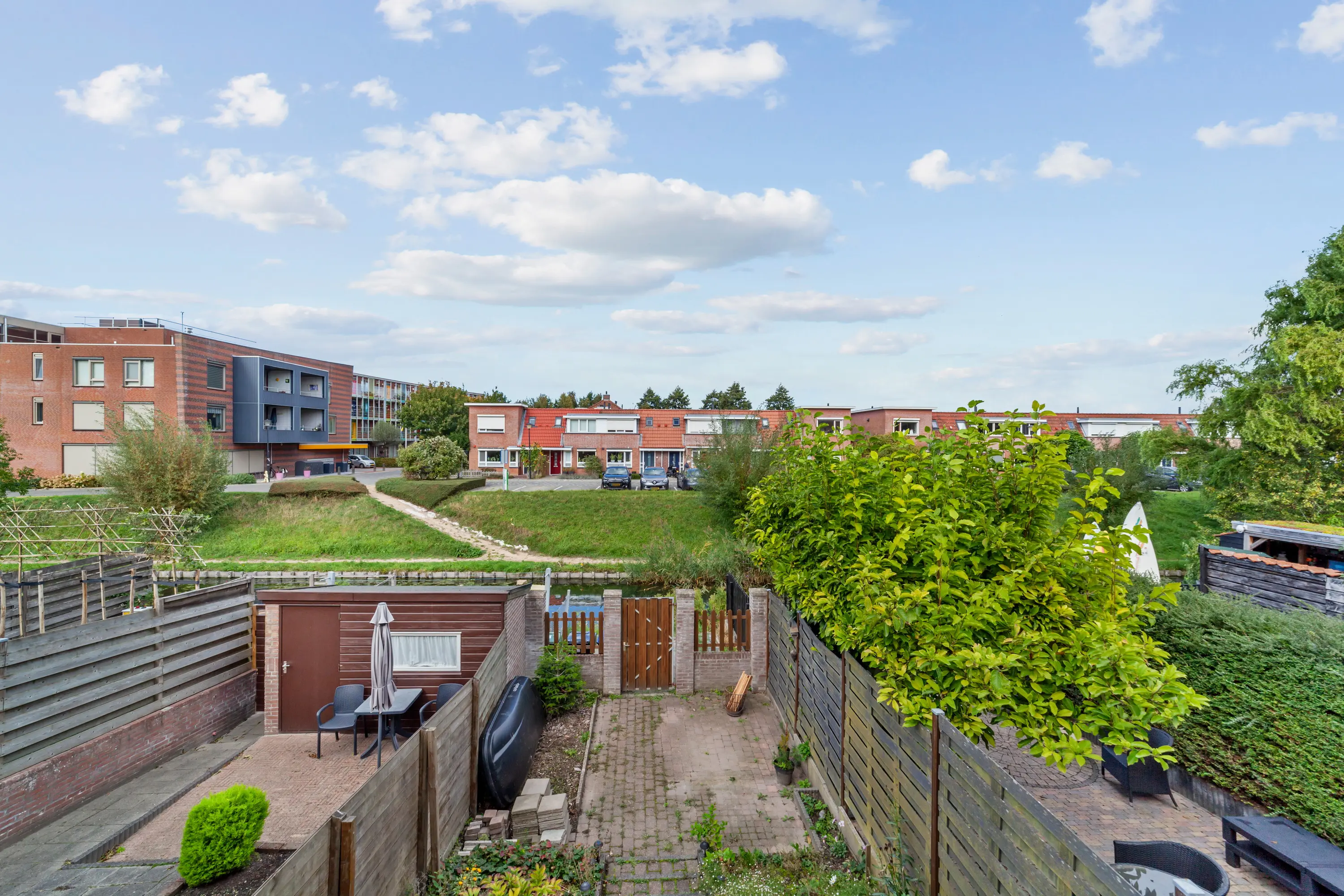 De achtertuin is een heerlijk plekje: direct grenzend aan het water, waar u volop kunt genieten van de zon. Door de hoogte verschillen zijn er diverse terrassen. Dankzij de praktische achterom is de tuin bovendien goed bereikbaar.