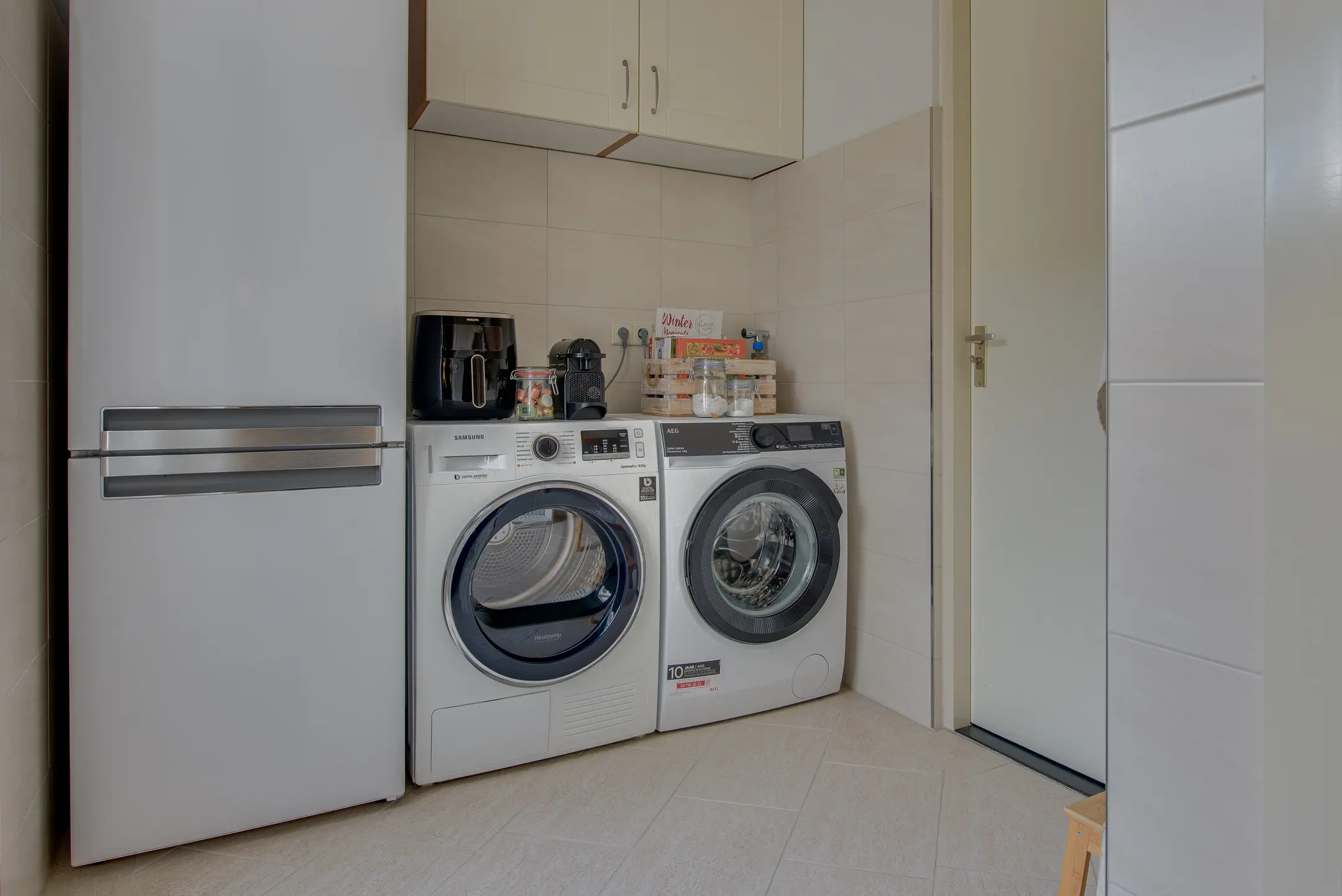 - Bijkeuken met witgoedaansluiting en deur naar achtertuin