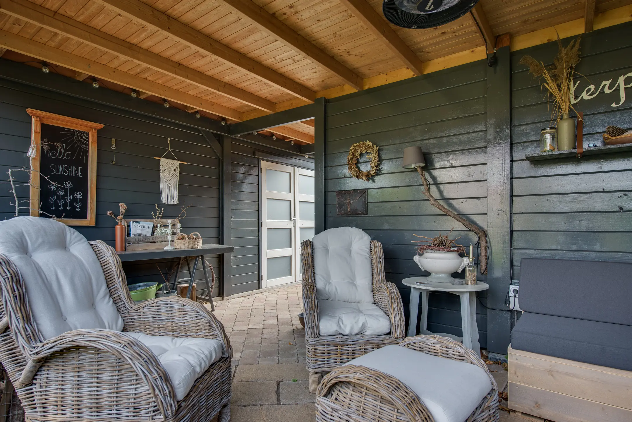 - Inpandig bereikbare berging met wasbak en deur naar achtertuin
