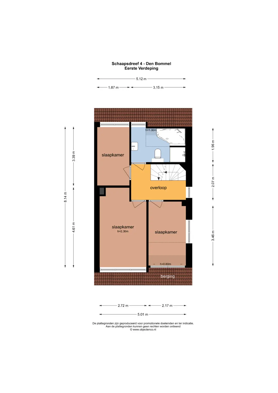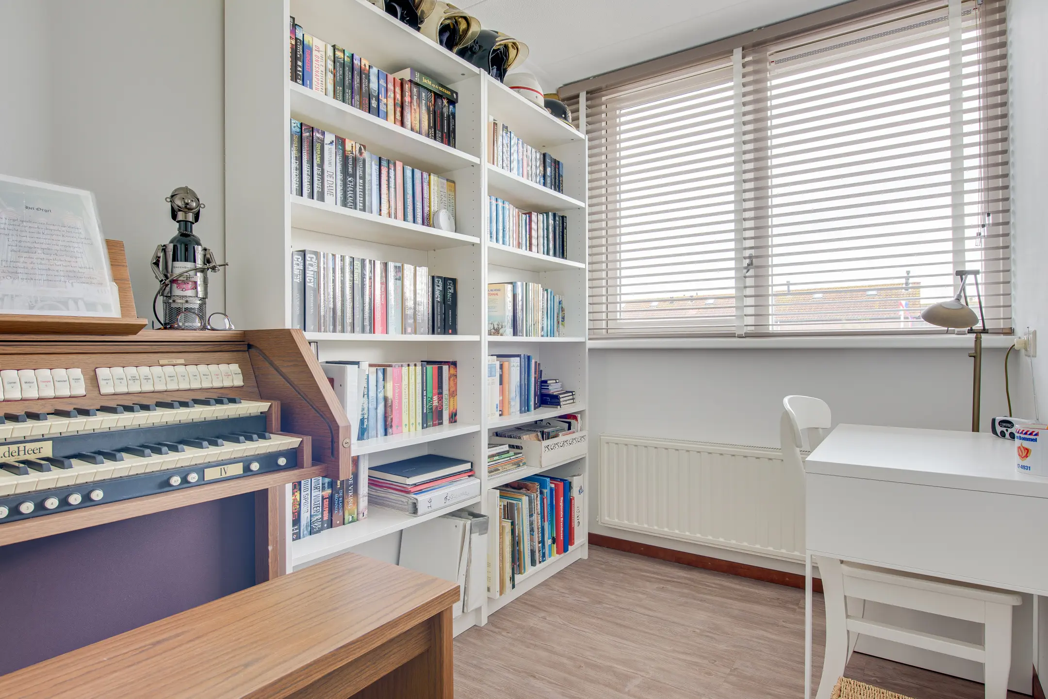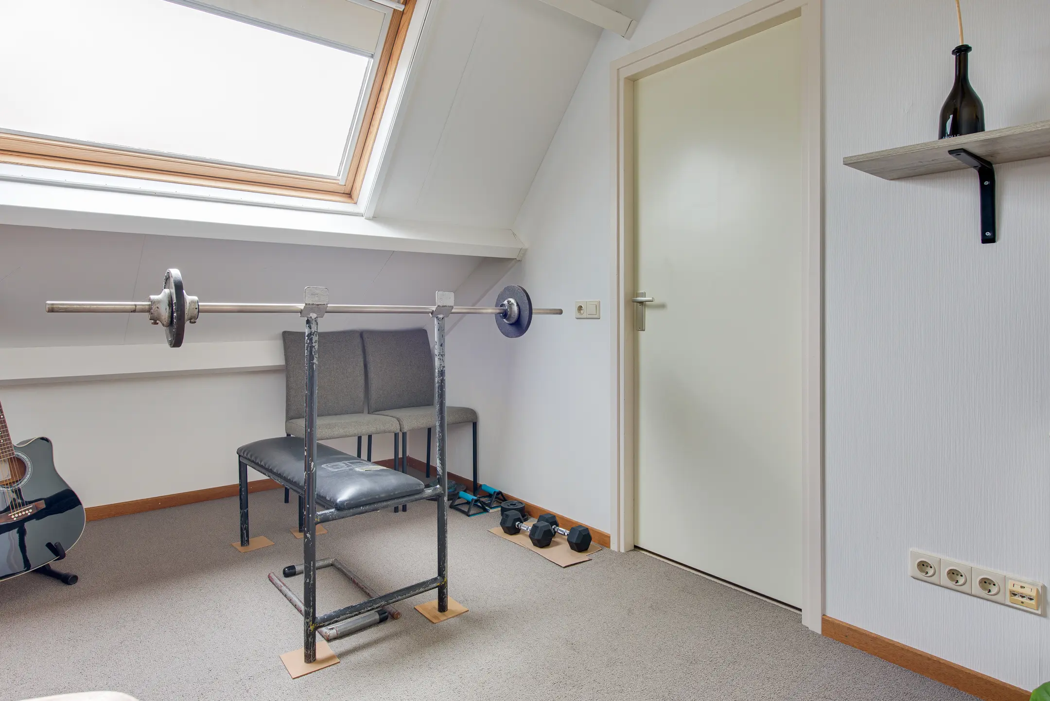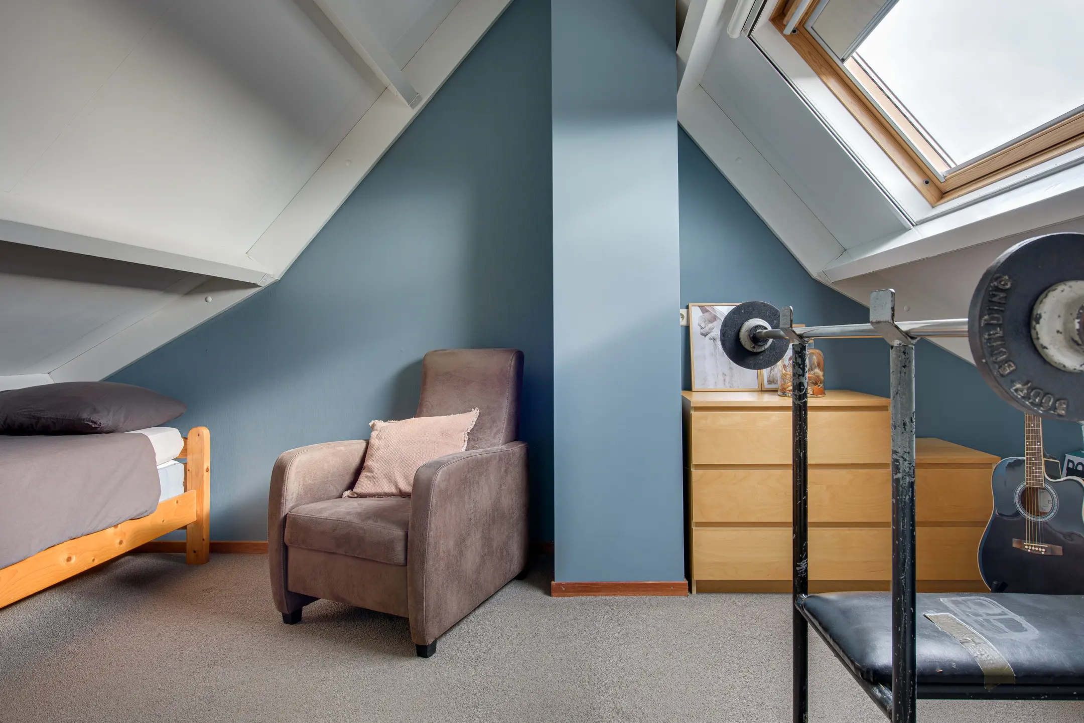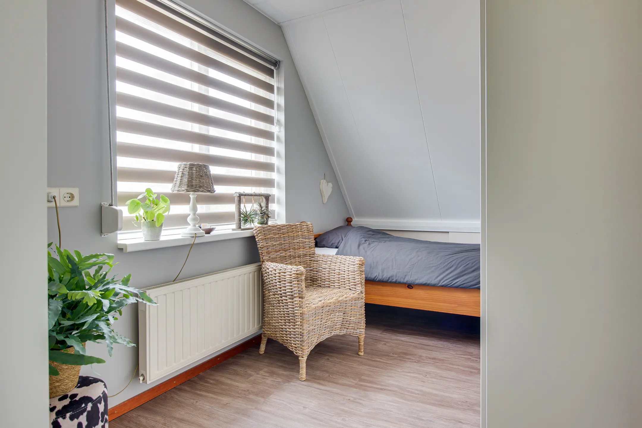 - 2e slaapkamer aan voorzijde met bergruimte onder knieschotten en rolluik