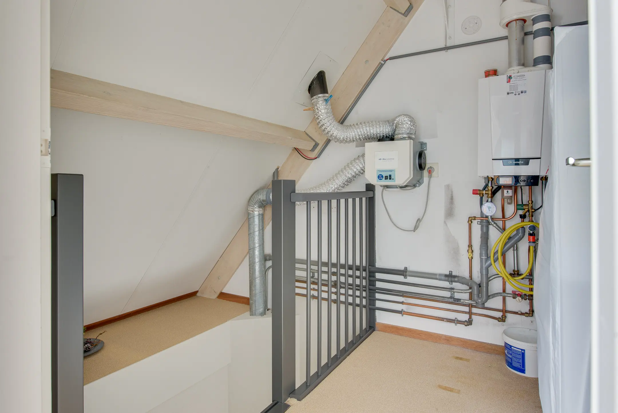 - Voorzolder met bergruimte, CV-opstelling (Remeha 2019), mechanische ventilatie unit (2019) en zonnepanelen omvormer