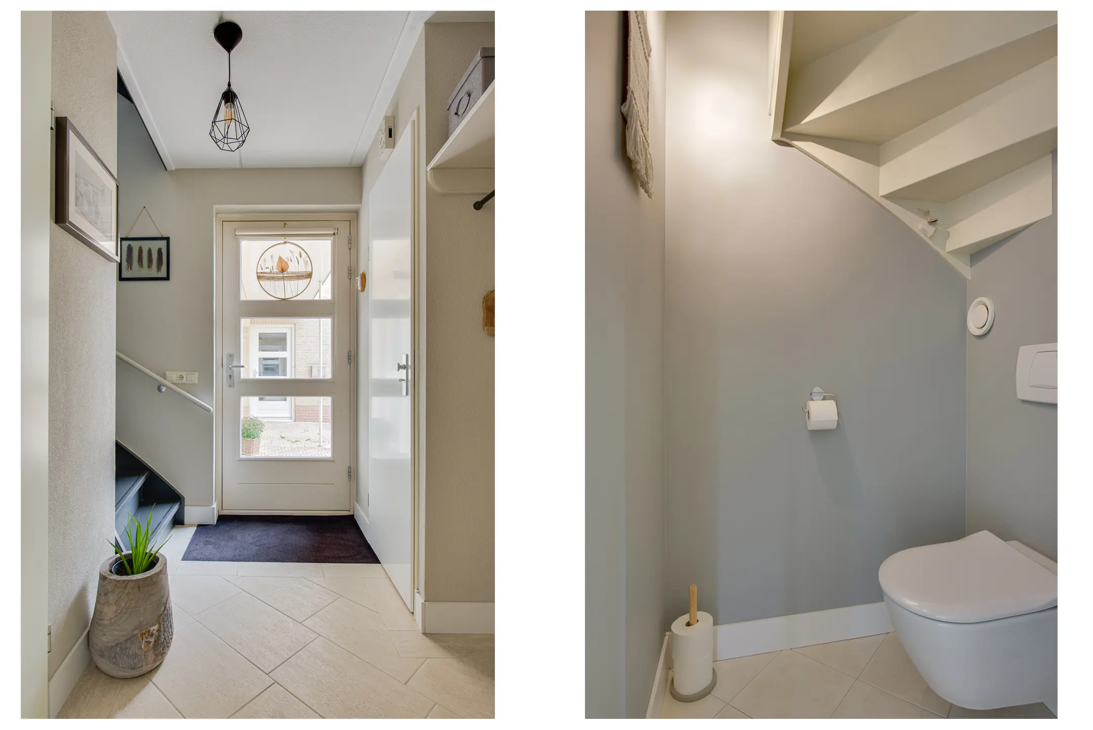 - Entree met trapopgang, meterkast, garderobe en toiletruimte