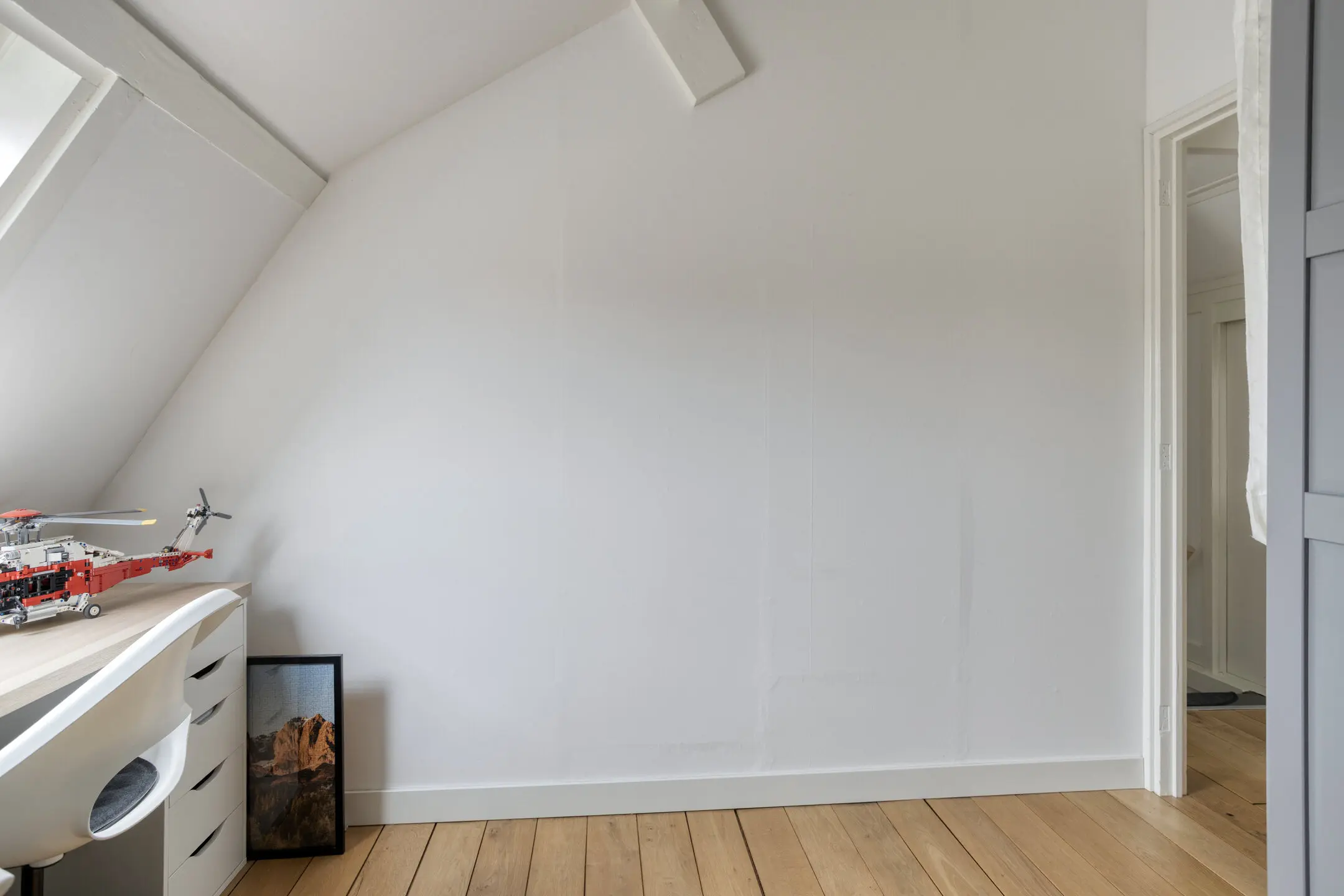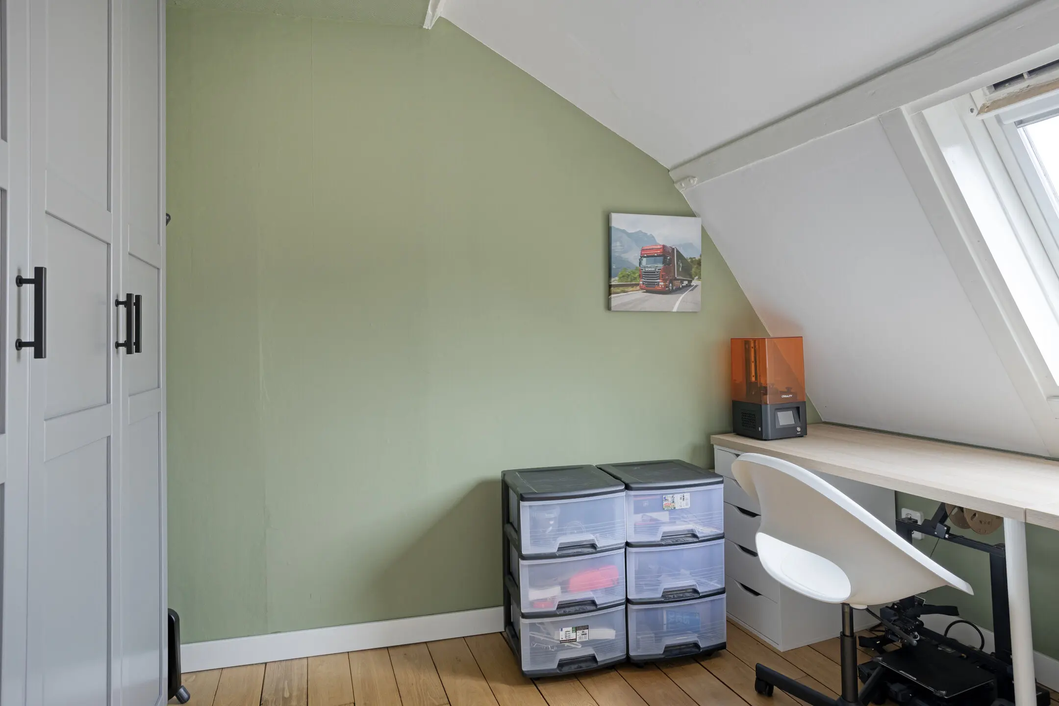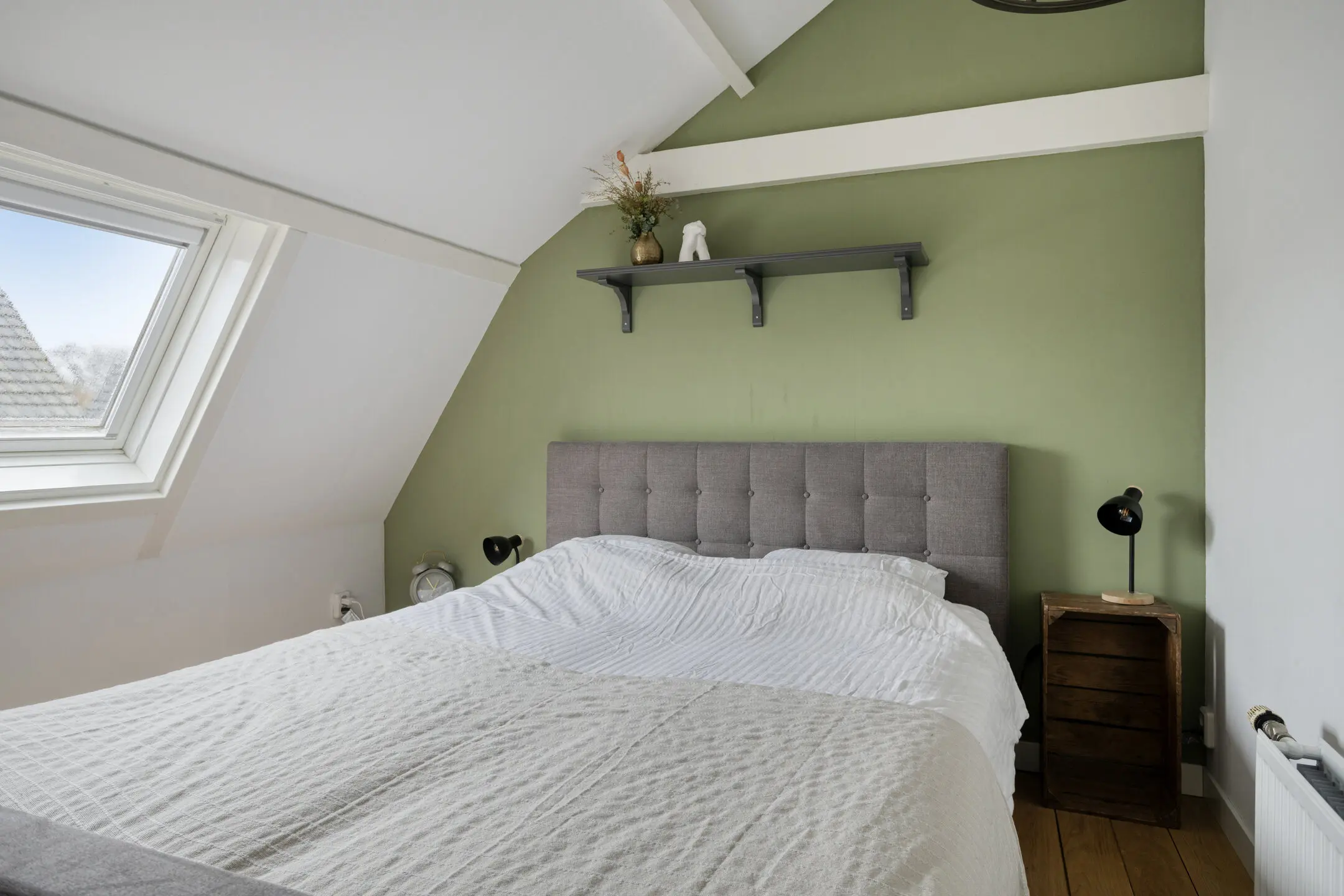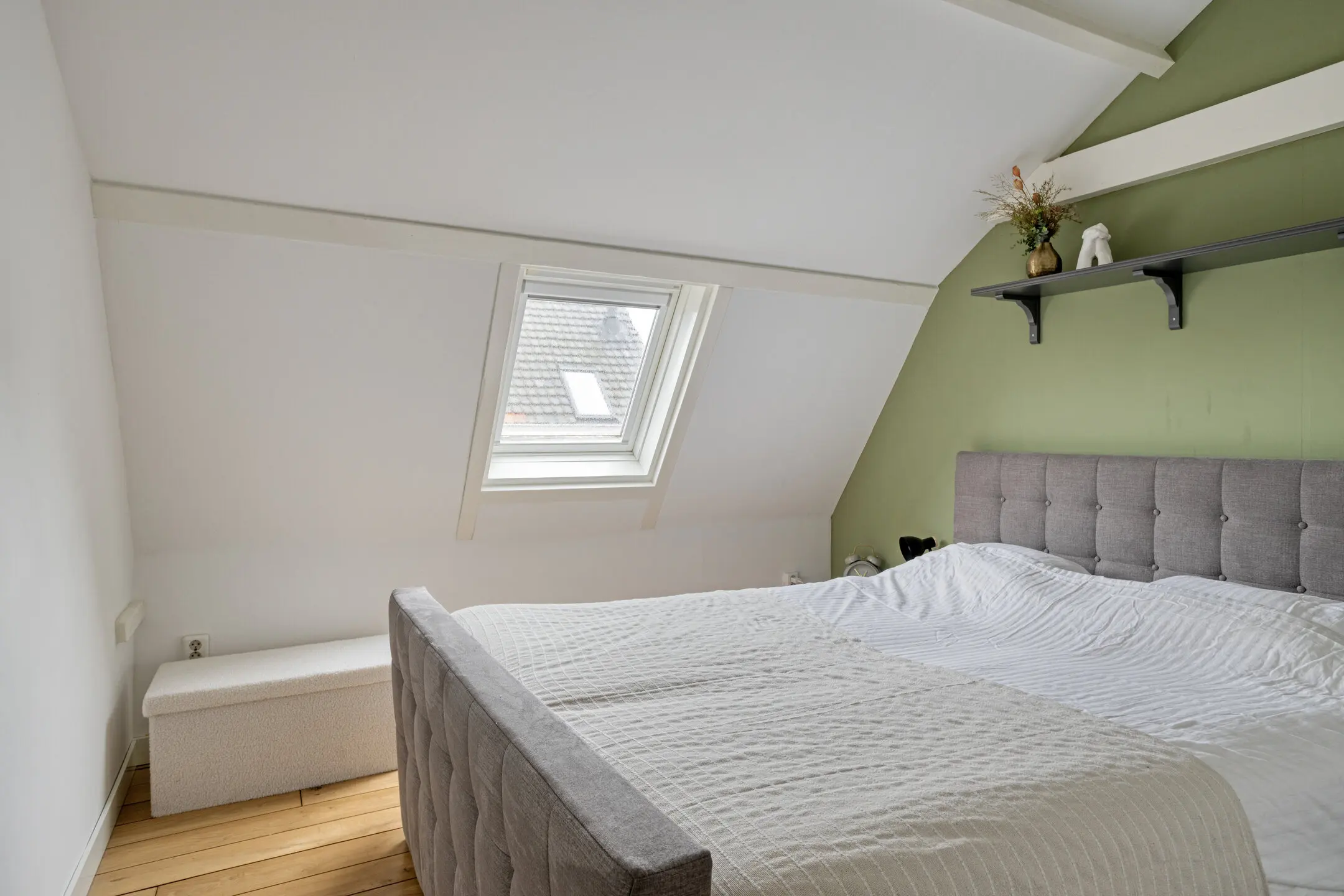 Op verdieping: ruime overloop met inbouwkast en CV-opstelling; 2 slaapkamers met Velux dakramen. De gehele verdiepingsvloer is voorzien van eiken houten vloerdelen.